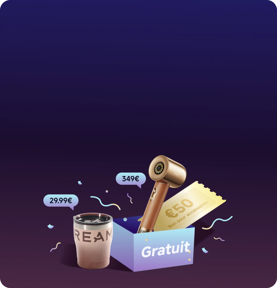 Les commandes d'un montant supérieur ou égal à 599 € donneront droit à une mini-tasse Dreame Life de la couleur de votrechoix (valeur 10 €).