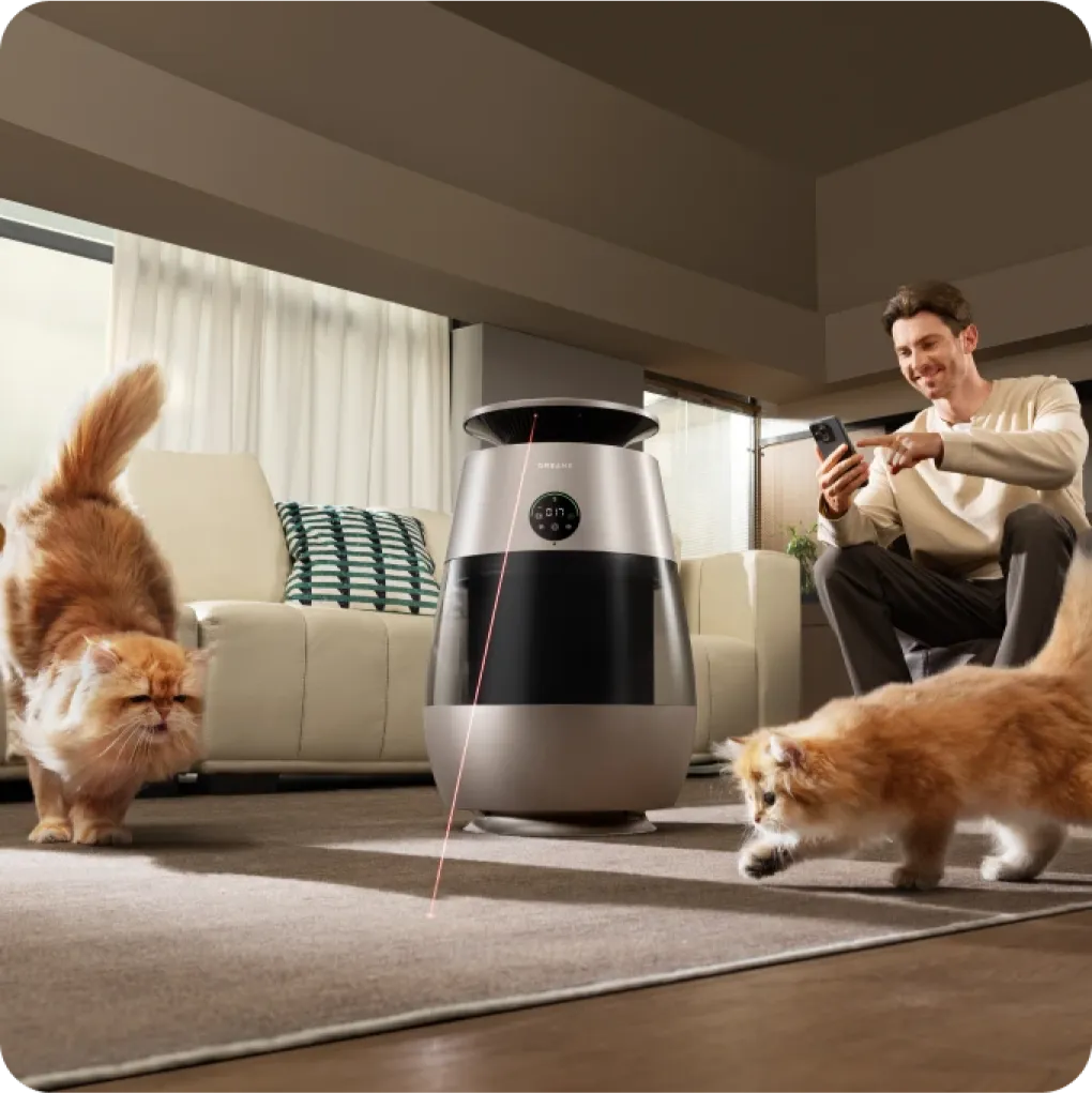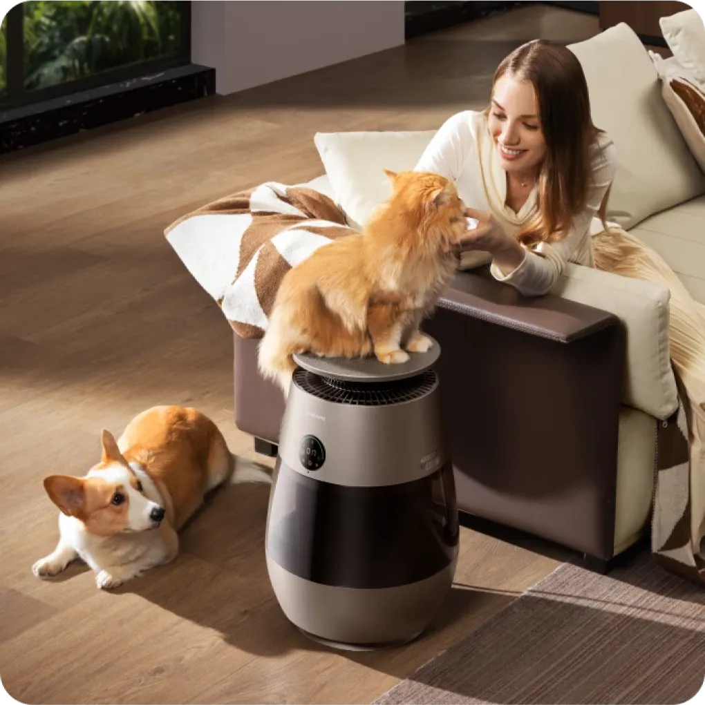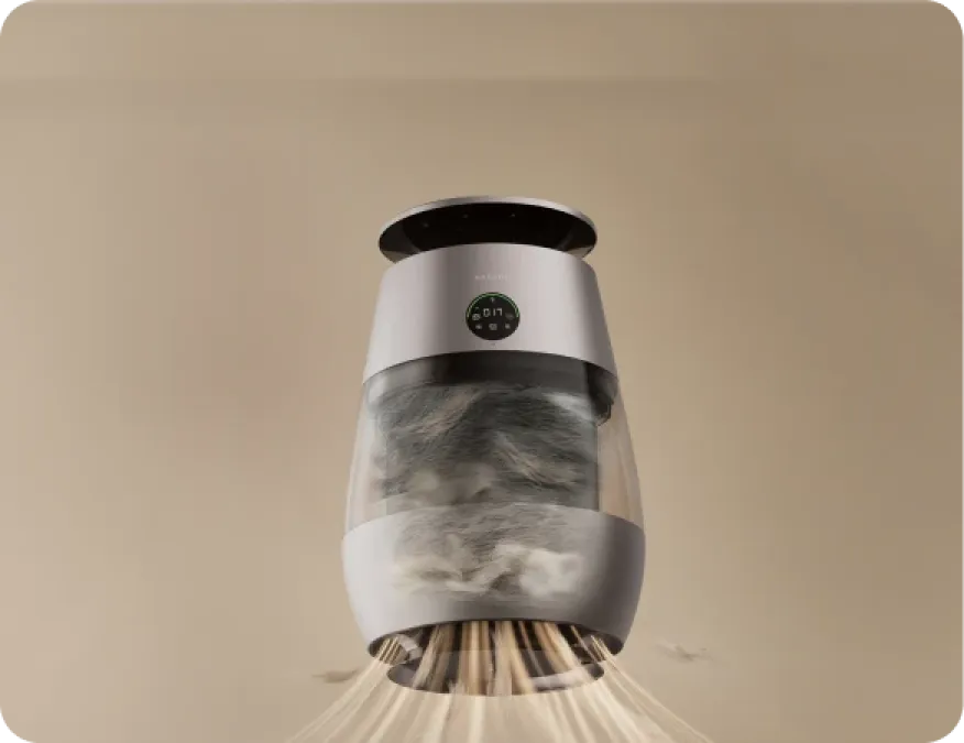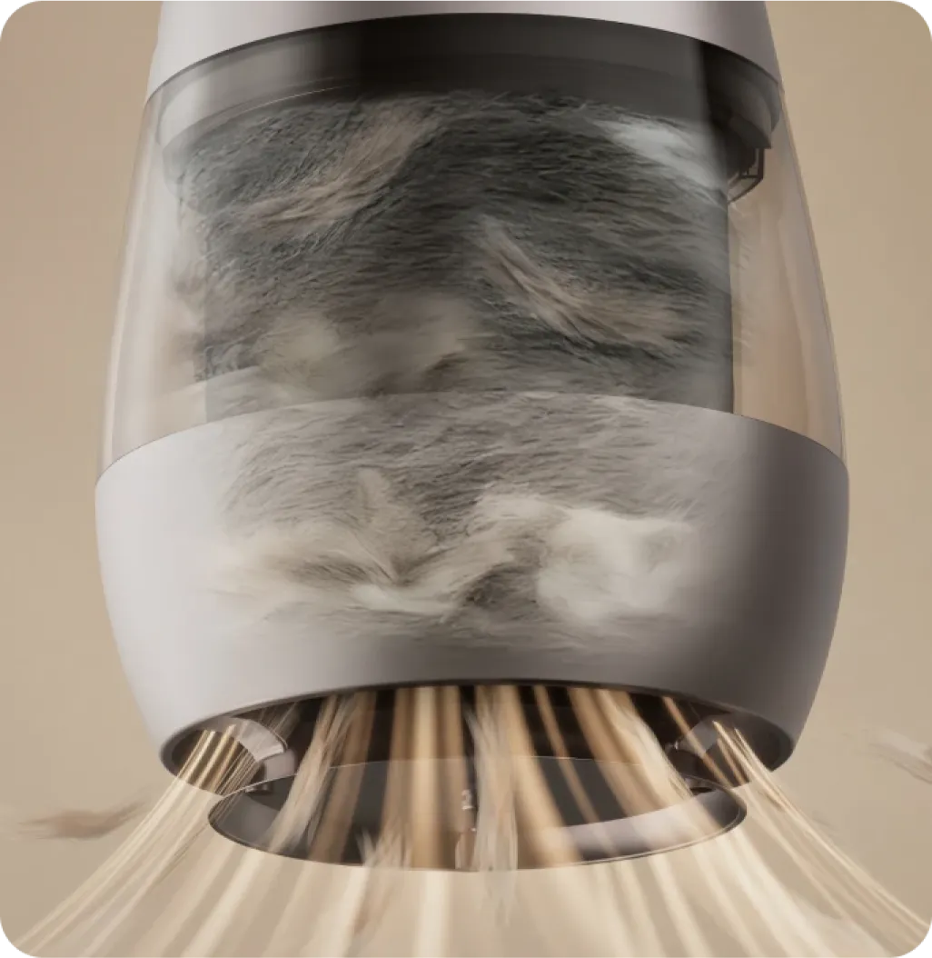 Grâce à son système de capture des poils à longue distance*, sa collecte automatique, son nettoyage puissant et sa circulation à haute fréquence, il peut rapidement capturer les poils volants de votre chat plein d'énergie ou les poils qu'il perd quotidiennement, et éliminer efficacement 99,9 % des poils flottants ou des touffes de poils sous les meubles et dans les interstices des canapés.