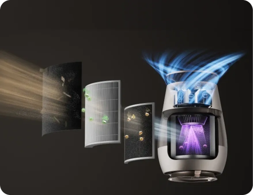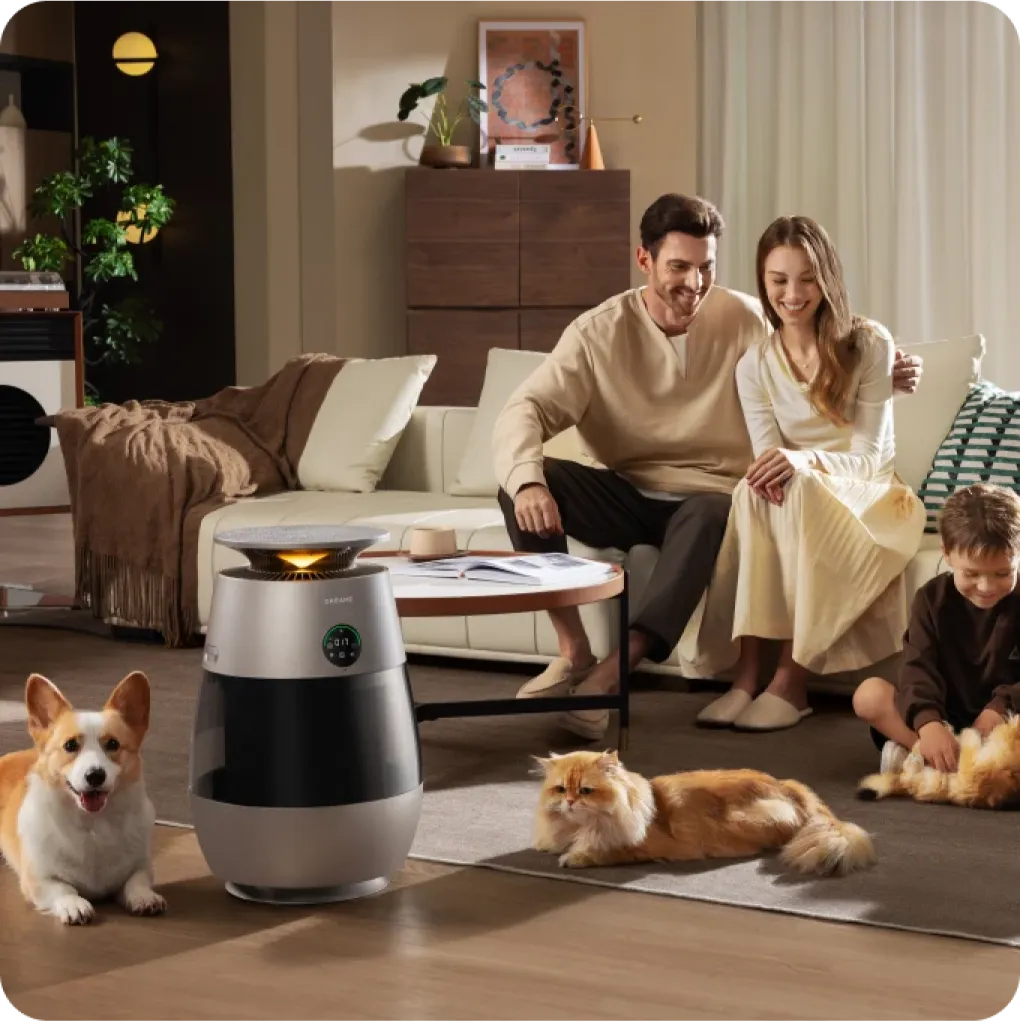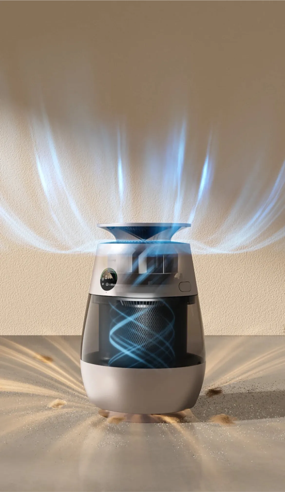 Grâce à son système de capture des poils à longue distance*, sa collecte automatique, son nettoyage puissant et sa circulation à haute fréquence, il peut rapidement capturer les poils volants de votre chat plein d'énergie ou les poils qu'il perd quotidiennement, et éliminer efficacement 99,9 % des poils flottants ou des touffes de poils sous les meubles et dans les interstices des canapés.