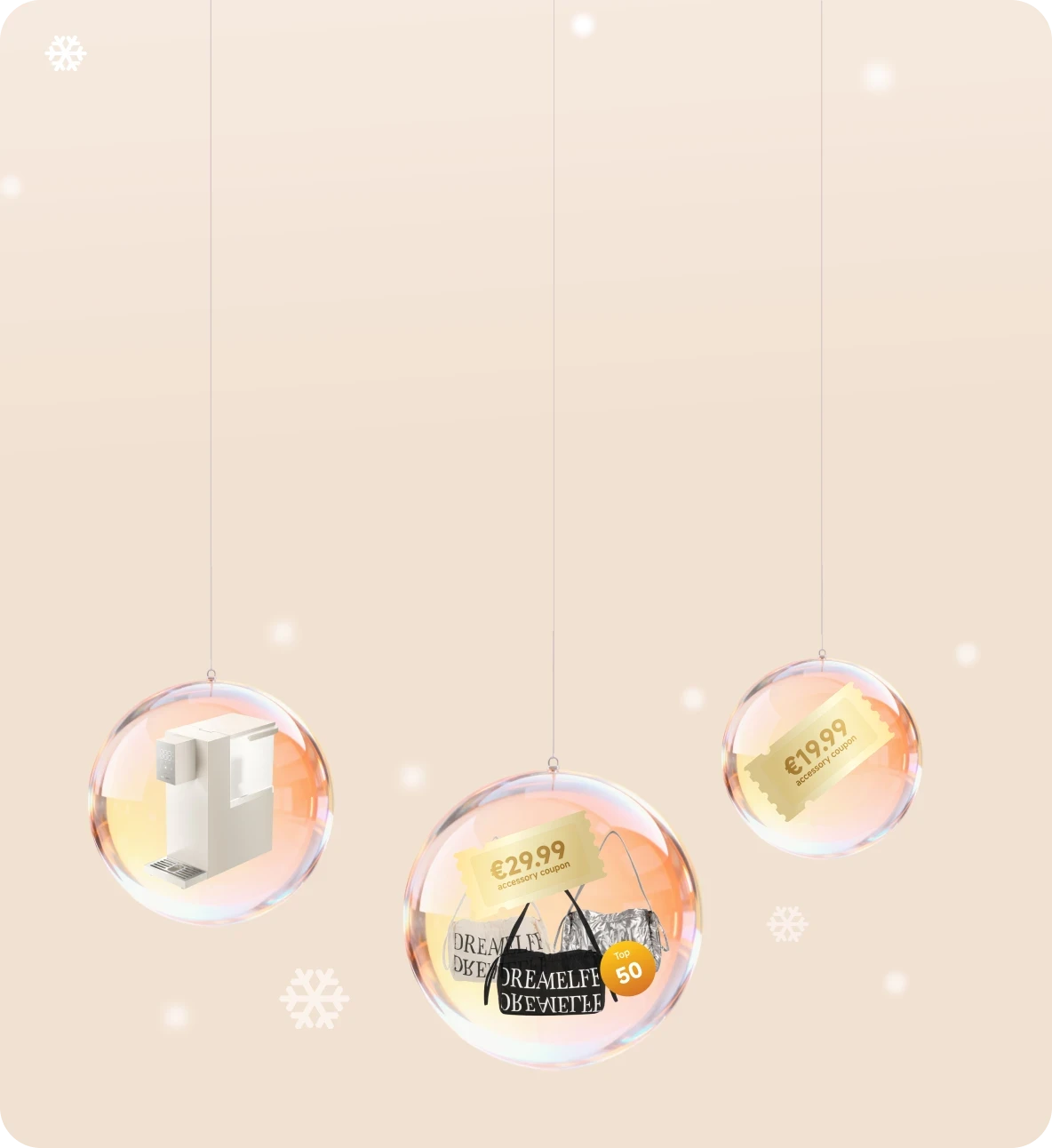 5. Palier B (commandes ≥ 999 €) : vous recevrez un Sac bandoulière Dreame life (valeur 39.99 €) au choix en argent, blanc ou noir. Ce cadeau est limité à 50 unités. Une fois le stock épuisé, les commandes atteignant 999 € recevront à la place un coupon accessoires de 29.99 €.