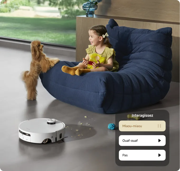 Gardez un œil sur votre animal et interagissez avec lui lorsque vous n’êtes pas à la maison, tandis que le robot aspirateur maintient l’espace de vie de votre animal toujours propre.