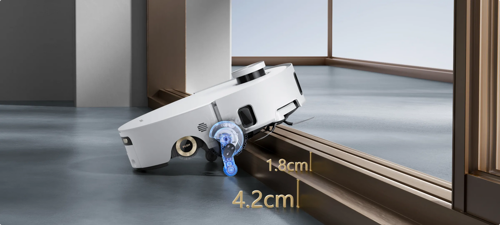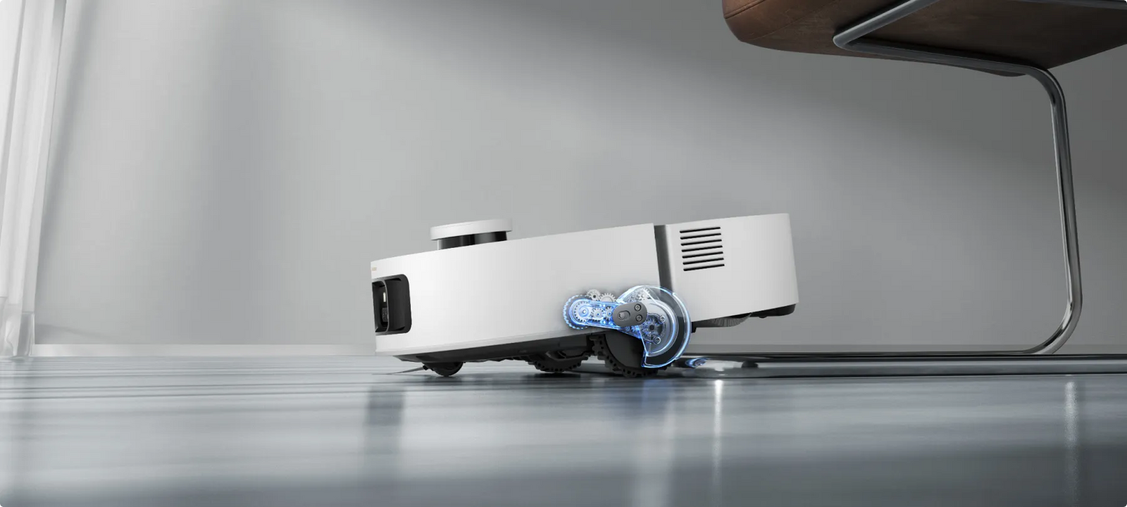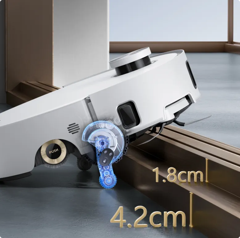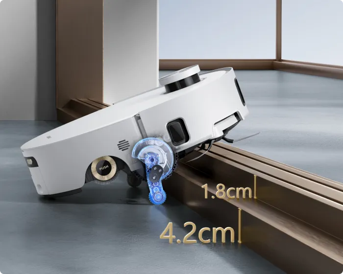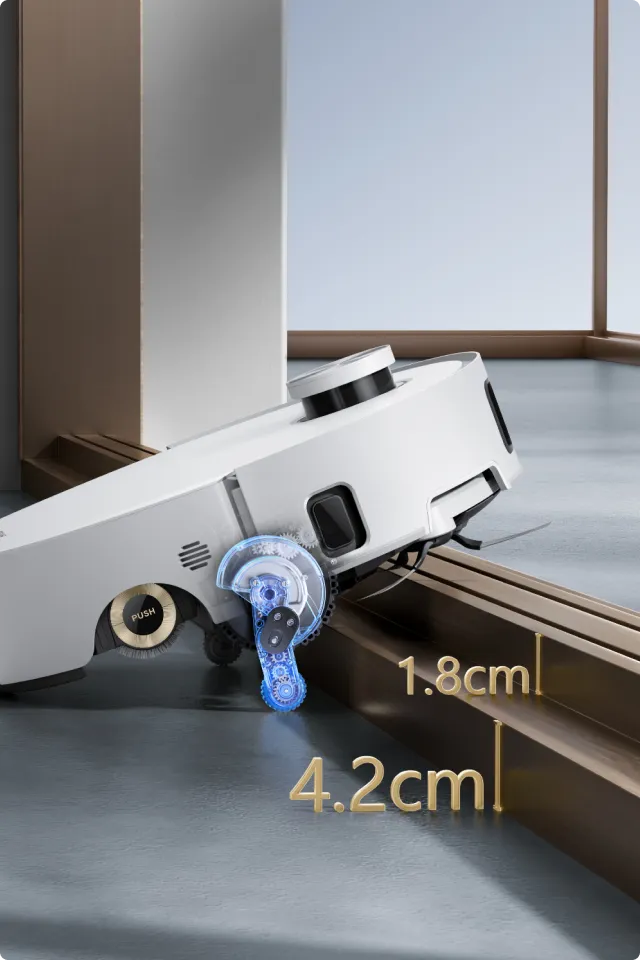 Le système ProLeap™ de l’Aqua10 Roller permet au robot-aspirateur de nettoyer sans effort les seuils, les rails de porte, les pieds de meubles en forme de U et les marches mesurant jusqu’à 6 cm*.