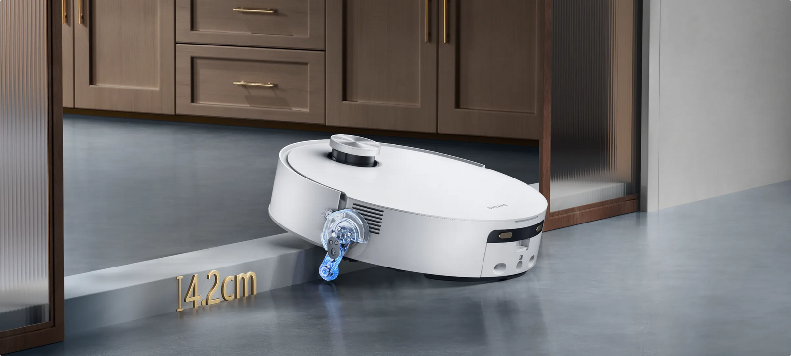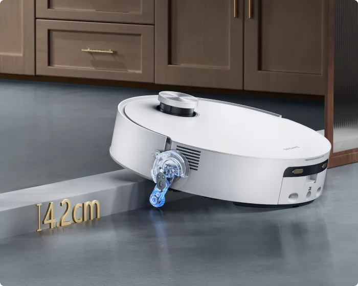 *14 mm : la différence de hauteur du robot aspirateur après et avant le levage des serpillières est de 14 mm.