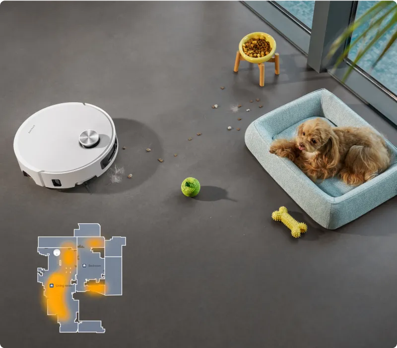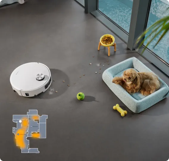 Détecte avec précision les obstacles, identifieplus de 240 objets et détecte la saleté dans les zones mal éclairées pour un nettoyage en profondeur et en toute sécurité grâce à son éclairage 3D, son voyant LED et sa caméra optimisée par l’IA.