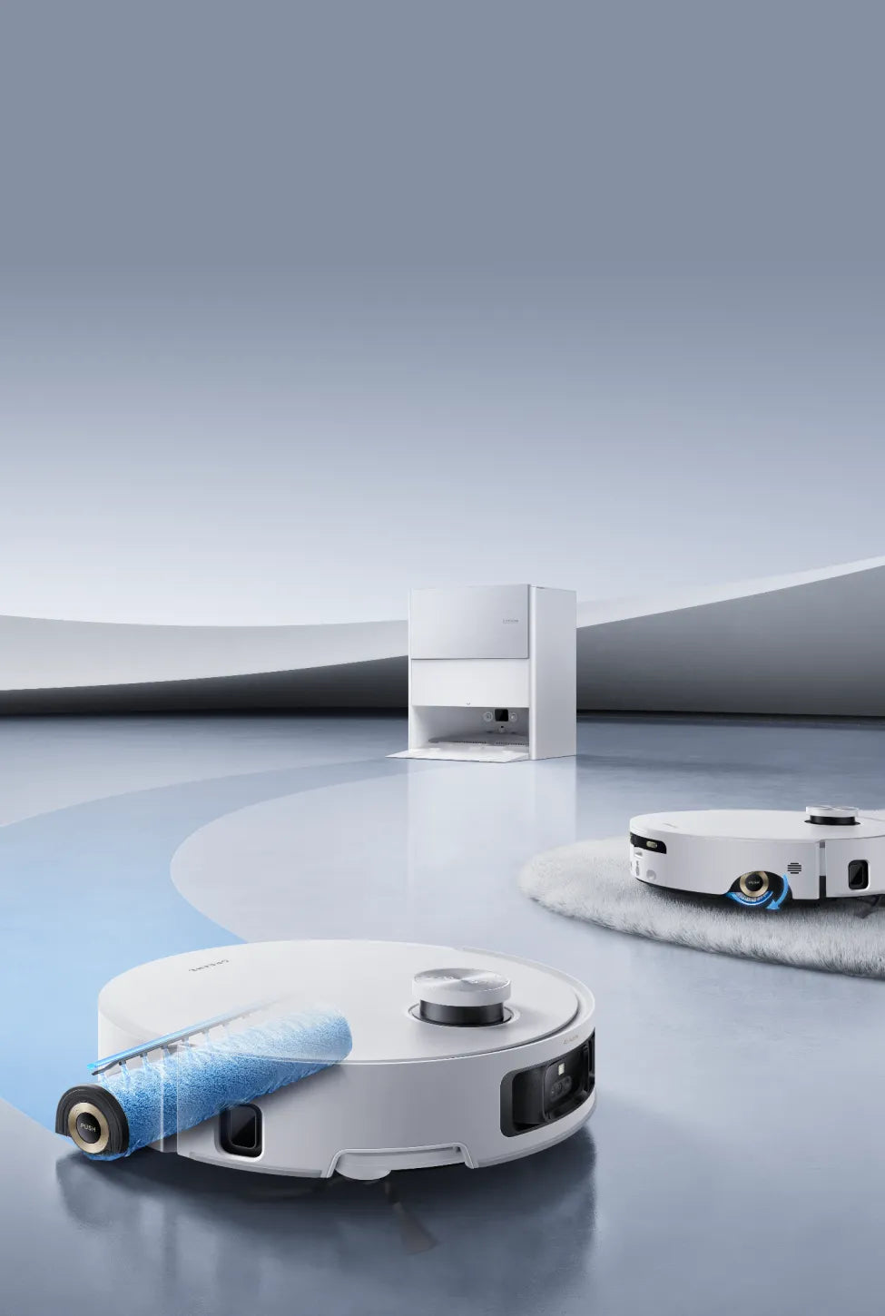 Un couvercle de rouleau innovant sécurise la serpillière à rouleau lors du nettoyage ou lorsque le robot franchit des zones recouvertes de tapis. Cela permet d’éviter que le tapis ne s’humidifie et n’absorbe les odeurs.
