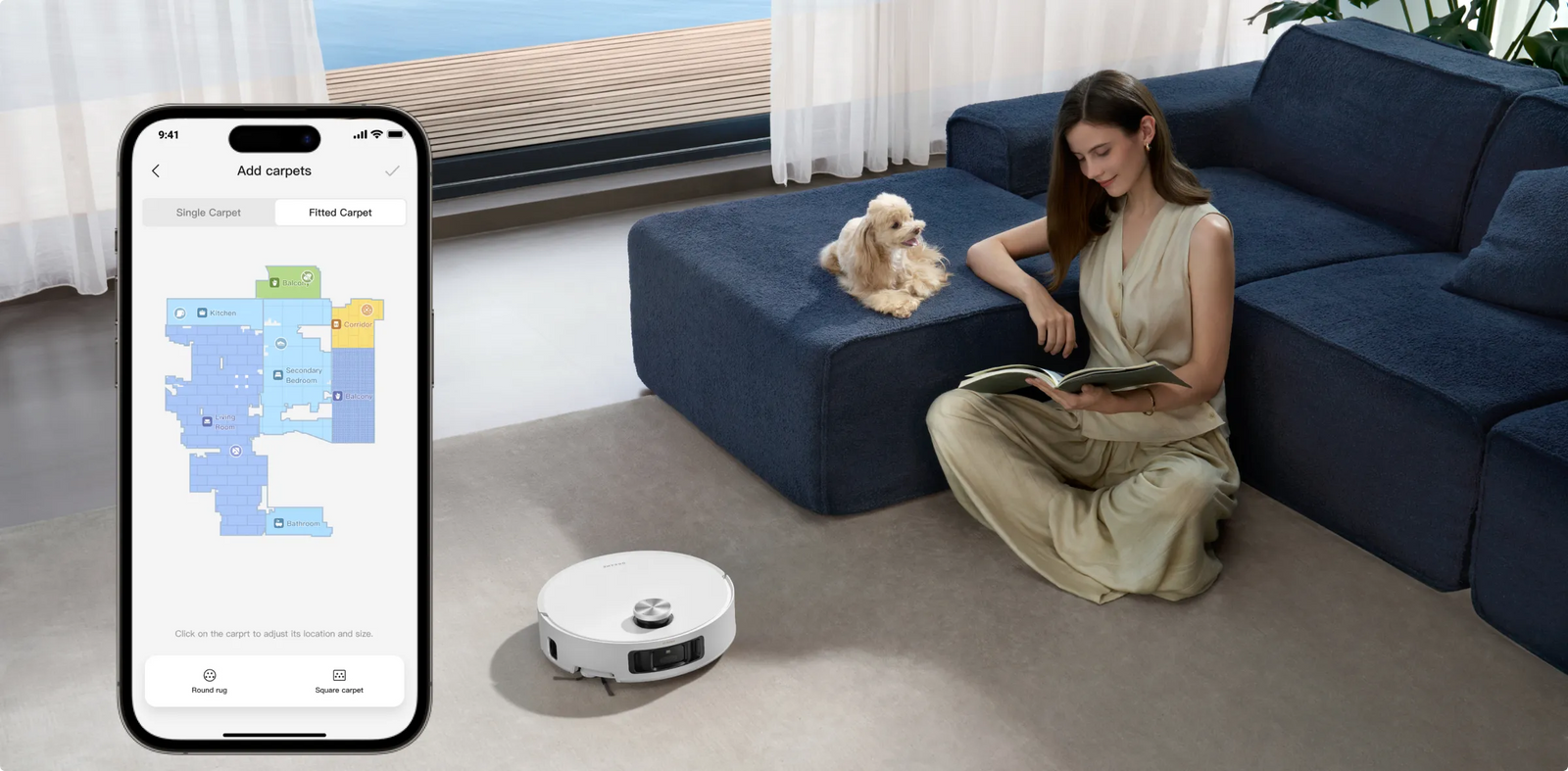 Ajoutez toutes les zones de votre maison recouvertes de tapis via l’application pour que votre robot aspirateur les identifie facilement. Même les tapis placés dans des angles inhabituels peuvent être tournés dans n’importe quel angle pour une meilleure reconnaissance.