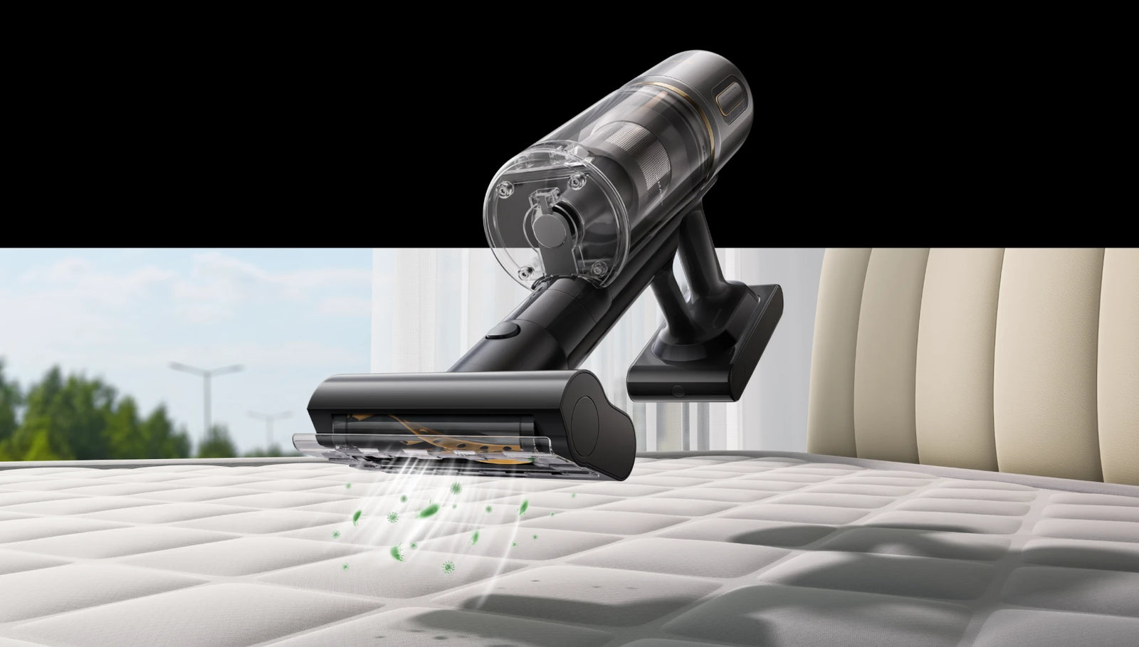Élimine jusqu’à 100 % des acariens présents dans la literie grâce à la mini-brosse motorisée, pour un sommeil plus sain et sans allergènes.*