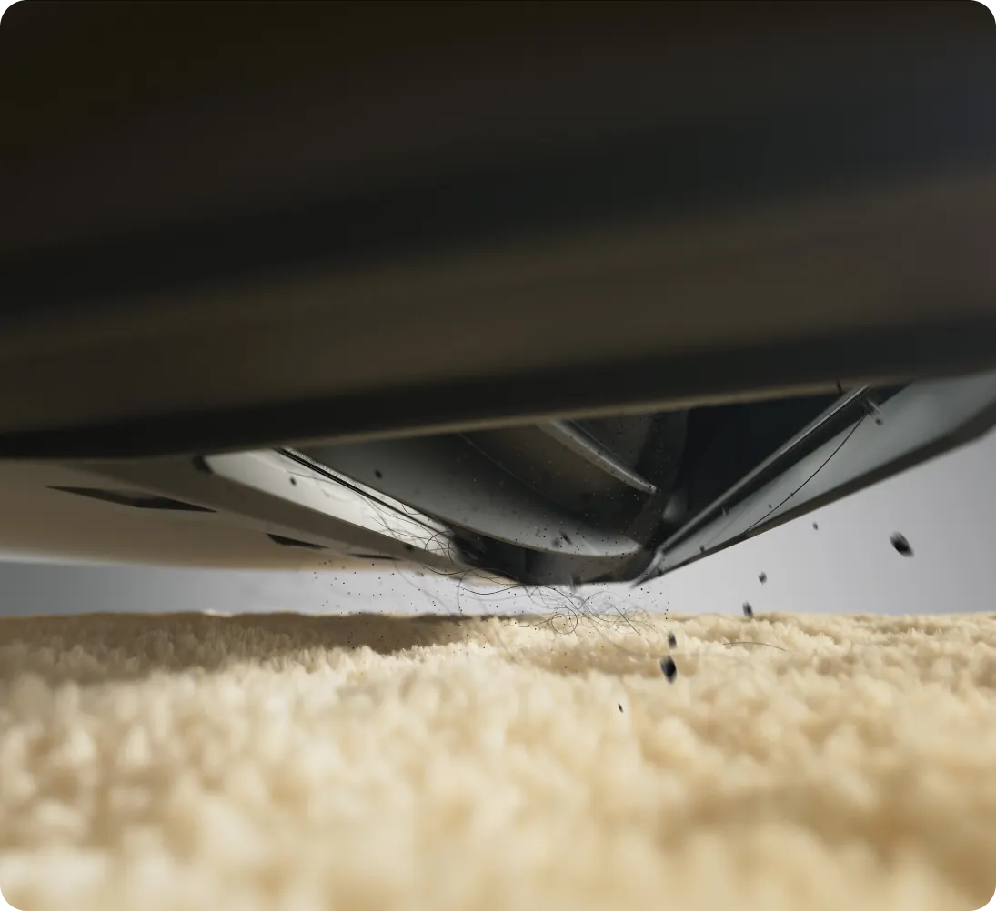 La brosse flottante en caoutchouc simplifie le nettoyage en éliminant sans effort la poussière incrustée sur les tapis et les sols tout en ramassant efficacement les cheveux. Elle se soulève automatiquement lorsqu'elle rencontre des obstacles pour un nettoyage en profondeur de votre intérieur.