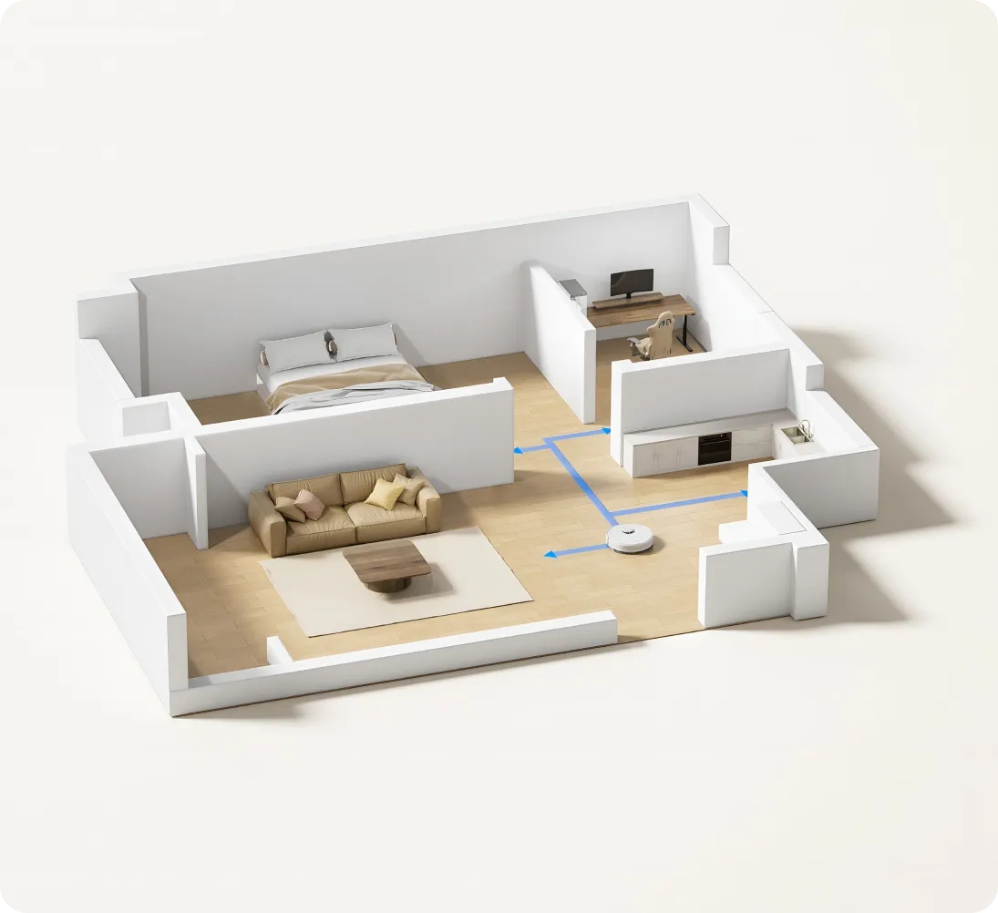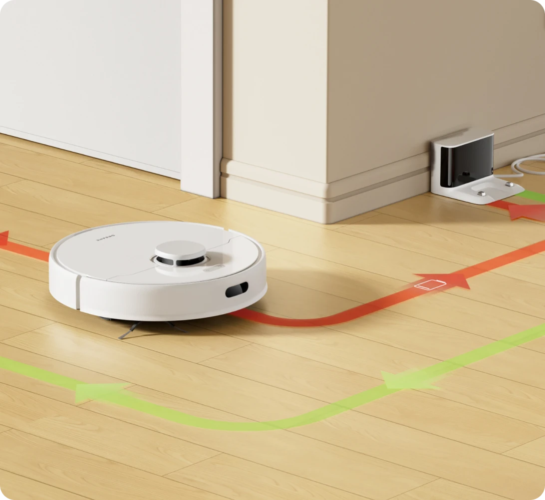 Lorsque la batterie est faible, le D9 Max Gen 2 retourne de façon autonome à la station d'accueil pour se recharger, avant de reprendre là où il s'était arrêté pour un nettoyage ininterrompu.