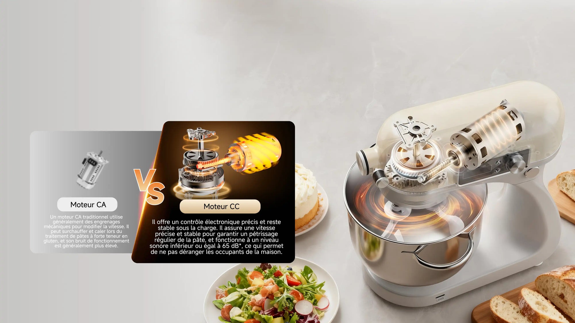 Le moteur à courant continu haute puissance de 800 W traite sans effort les pâtes à forte teneur en gluten avec un minimum de bruit, préservant ainsi la tranquillité de votre maison.