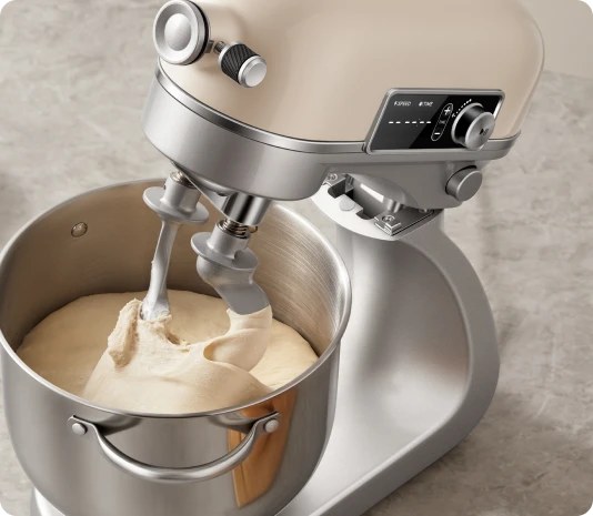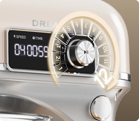 Le mélangeur dispose de 12 niveaux de vitesse préréglés, répondant à tous les besoins, du mélange au pétrissage, en passant par le fouettage.