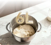 La capacité de 6 litres permet de traiter jusqu'à 1,5 kg de farine, ce qui répond facilement aux besoins des familles nombreuses ou à une plus grande préparation en vue de grandes occasions.