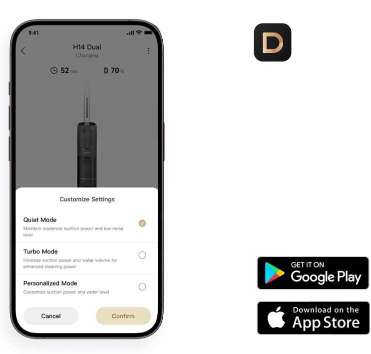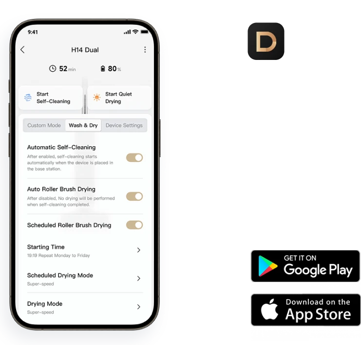 * Contrôle par application : connectez le H14 Dual à l'application Dreamehome (Wi-Fi 2,4 GHz).