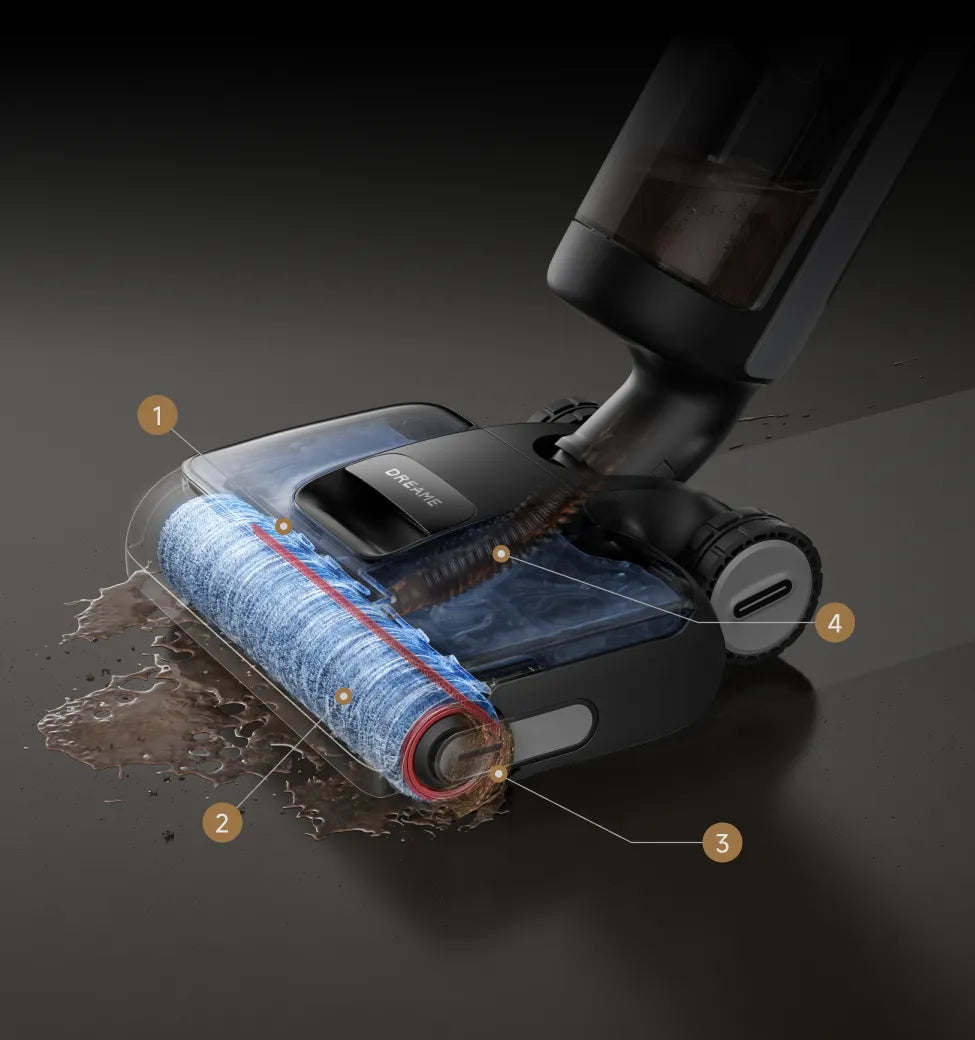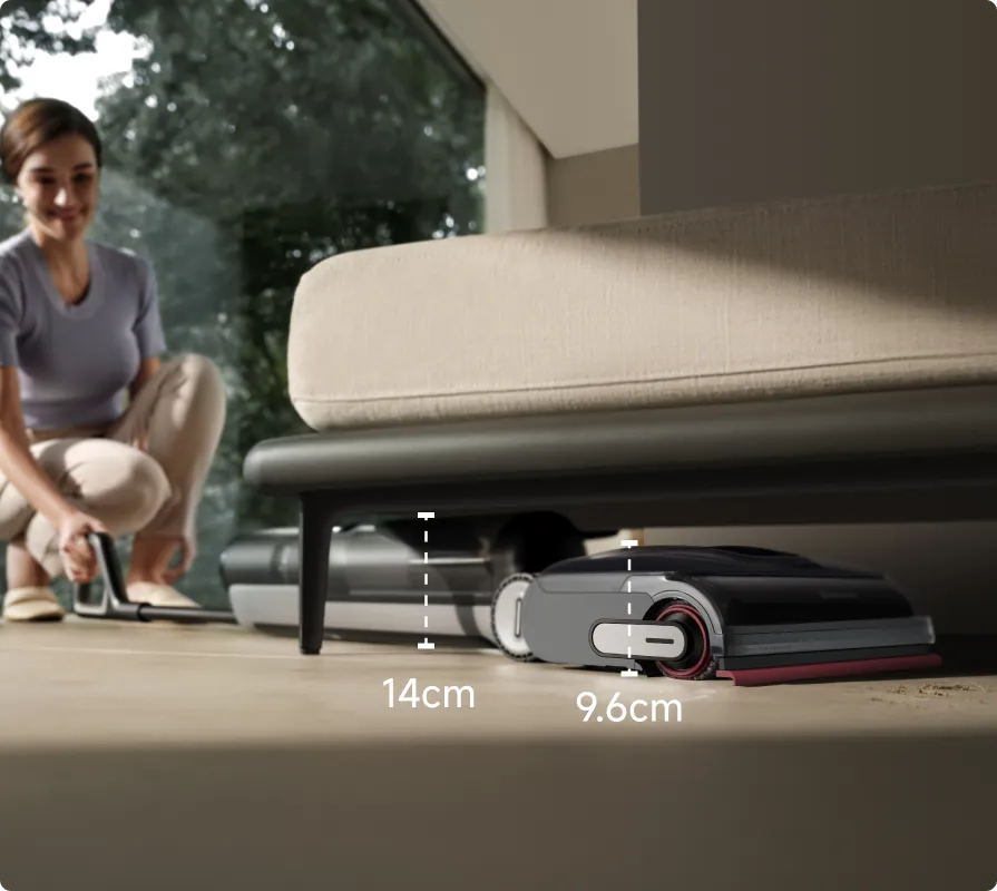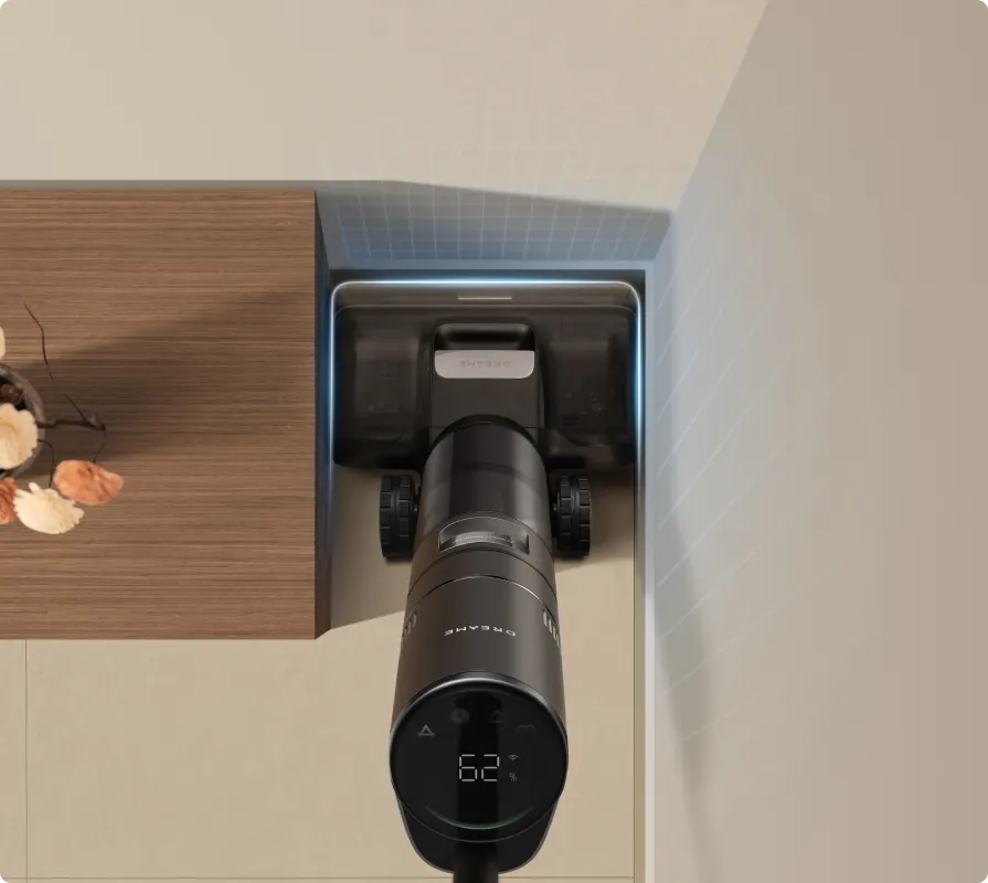 De eerste nat- en droogzuiger van Dreame die de lastigste ruimtes van 2 cm* aan de rand bereikt. In combinatie met de AI DescendReach-robotarm streeft de H15 Pro ernaar om geen tussenruimte* achter te laten, dankzij letterlijk driezijdige dekking. Daarbij wordt vuil langs muren en randen aangepakt zonder dat u achteraf nog handmatig hoeft schoon te maken.