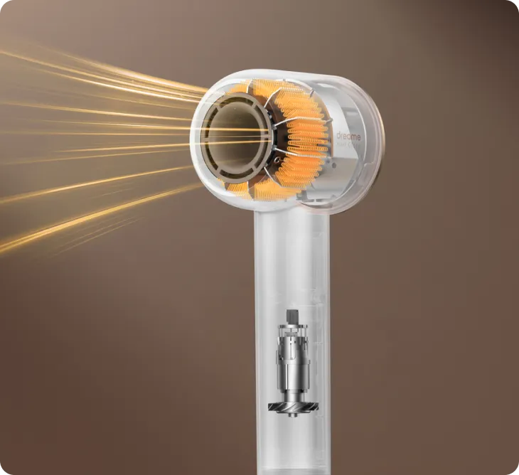 Un puissant moteur sans balai avec une structure verticale optimisée fournit un flux d'air robuste tout en générant un bruit inférieur à 76 dB. Séchez vos cheveux sans vous isoler complètement du monde extérieur, pour un séchage plus agréable.