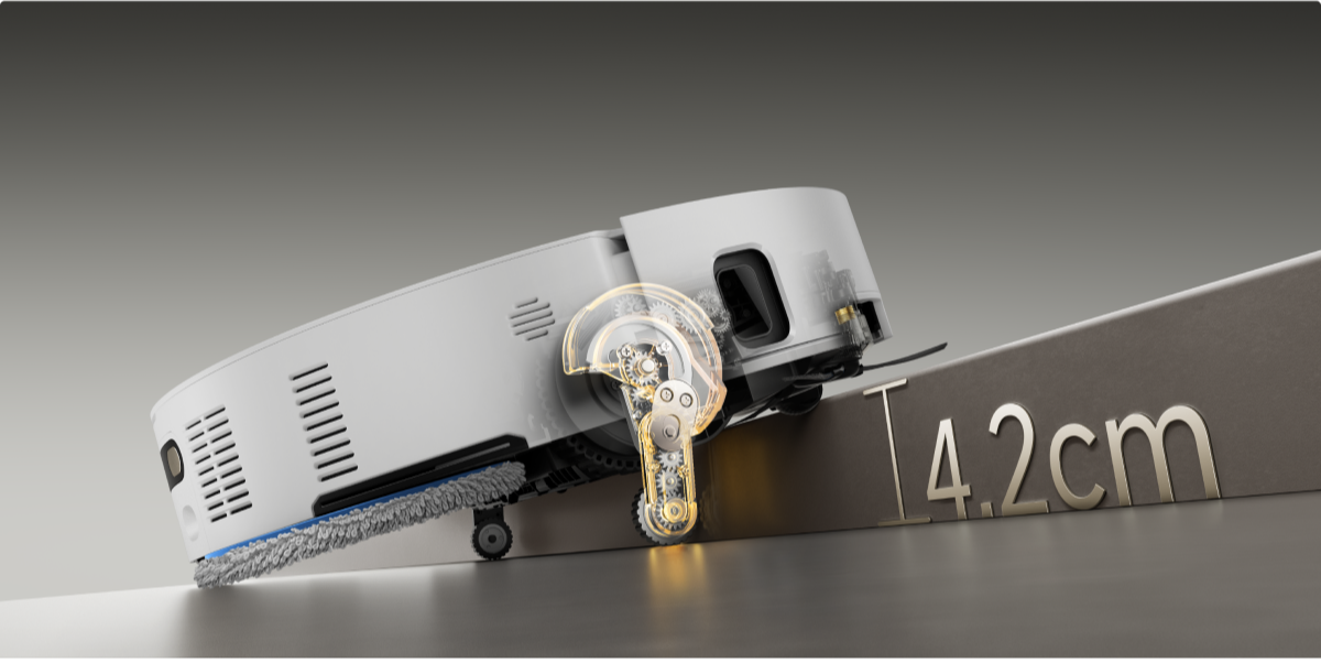 * 10,5 mm : sur la base des données de notre laboratoire interne. la différence de hauteur du robot aspirateur est de 10,5 mm avant et après le levage des serpillières.