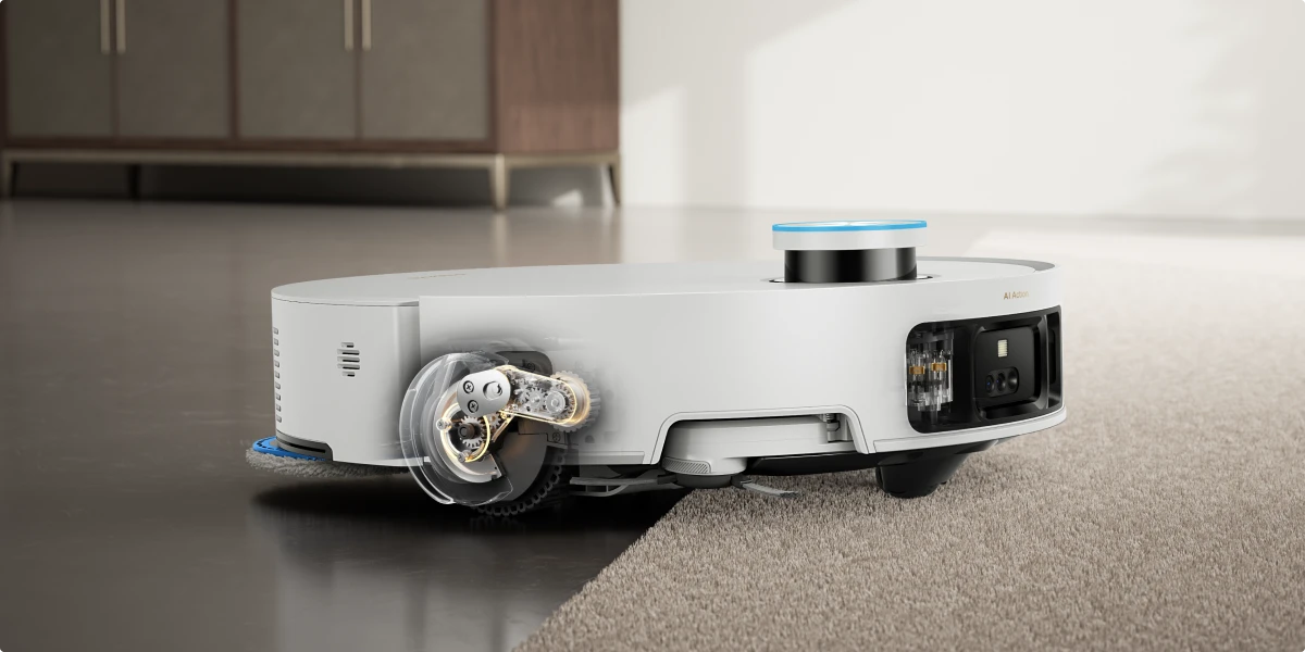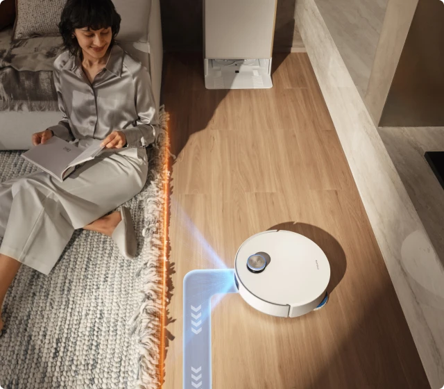 Avec l'éclairage 3D structuré et l'action de l'IA, le Matrix10 Ultra détecte rapidement plus de 240 types d'objets.* Cette technologie génère une carte 3D détaillée pour détecter et éviter les petits objets tels que les fils et les chaussettes, tout en naviguant en toute sécurité à proximité de grands obstacles tels que les chaussures et les socles de recharge.