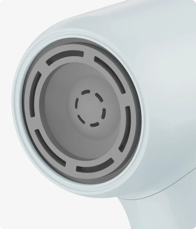 L'entrée d'air amovible offre une prise en main modulable et limite les risques d'emmêlement des cheveux. Elle se nettoie facilement pour éliminer poussières et résidus de produits coiffants.