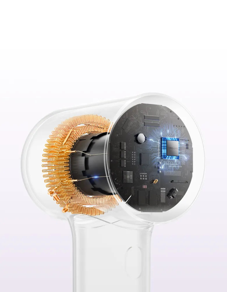 Un générateur d’ions négatifs intégré libère 200 millions d’ions négatifs* pour dompter les frisottis et fermer les cuticules, préservant ainsi l’hydratation tout en renforçant la brillance.