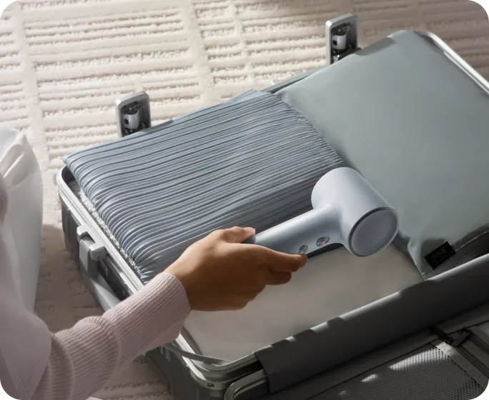 *2 minutes : Sur la base de tests réalisés dans un environnement contrôlé. La durée peut varier en fonction de l’environnement, de la texture, de l’épaisseur et de la longueur des cheveux à sécher.