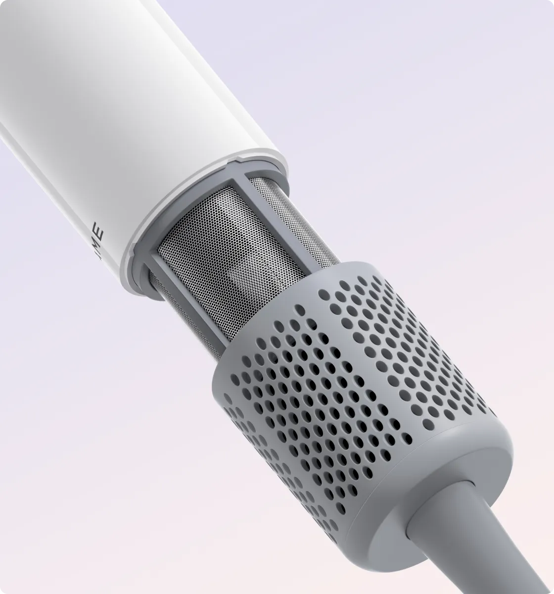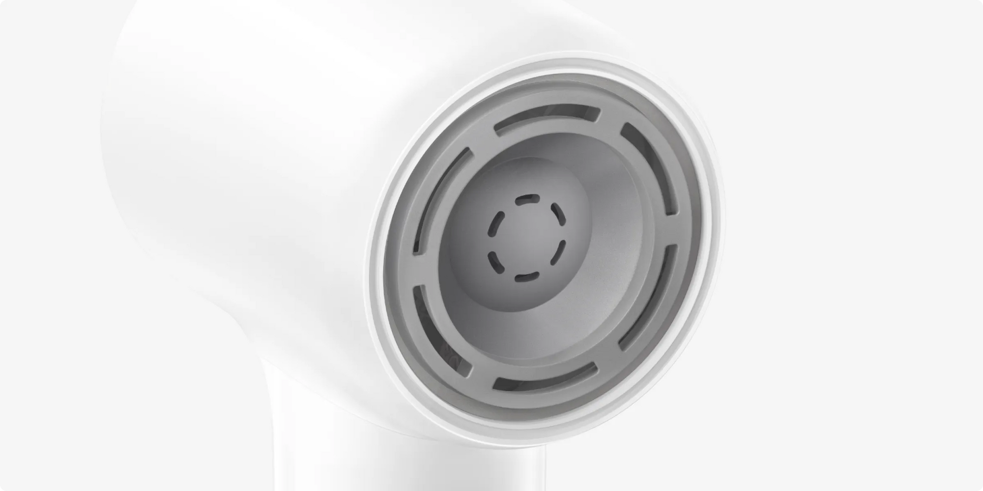L'entrée d'air amovible offre une prise en main modulable et limite les risques d'emmêlement des cheveux. Elle se nettoie facilement pour éliminer poussières et résidus de produits coiffants.