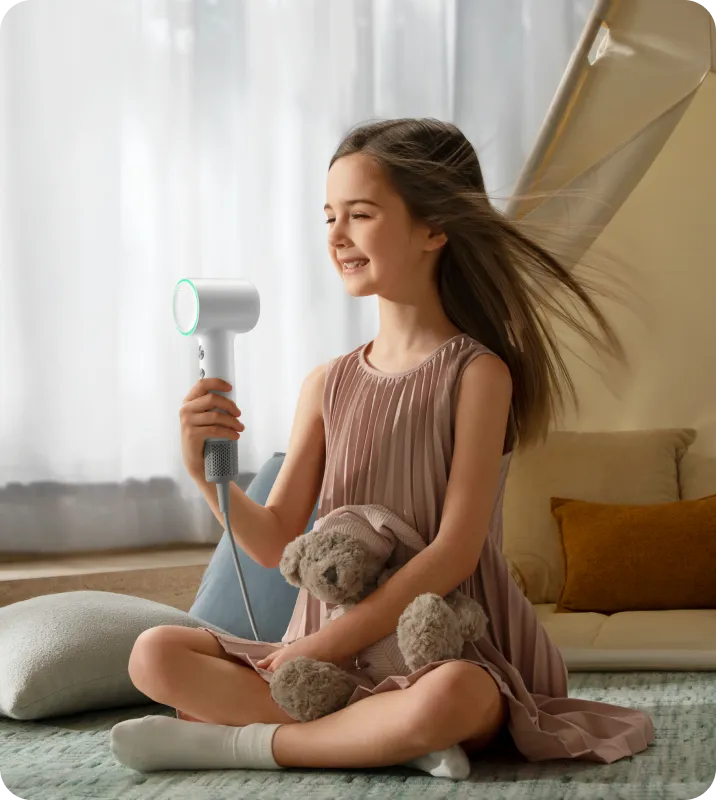 Un générateur d’ions négatifs intégré libère 200 millions d’ions négatifs* pour dompter les frisottis et fermer les cuticules, préservant ainsi l’hydratation tout en renforçant la brillance.