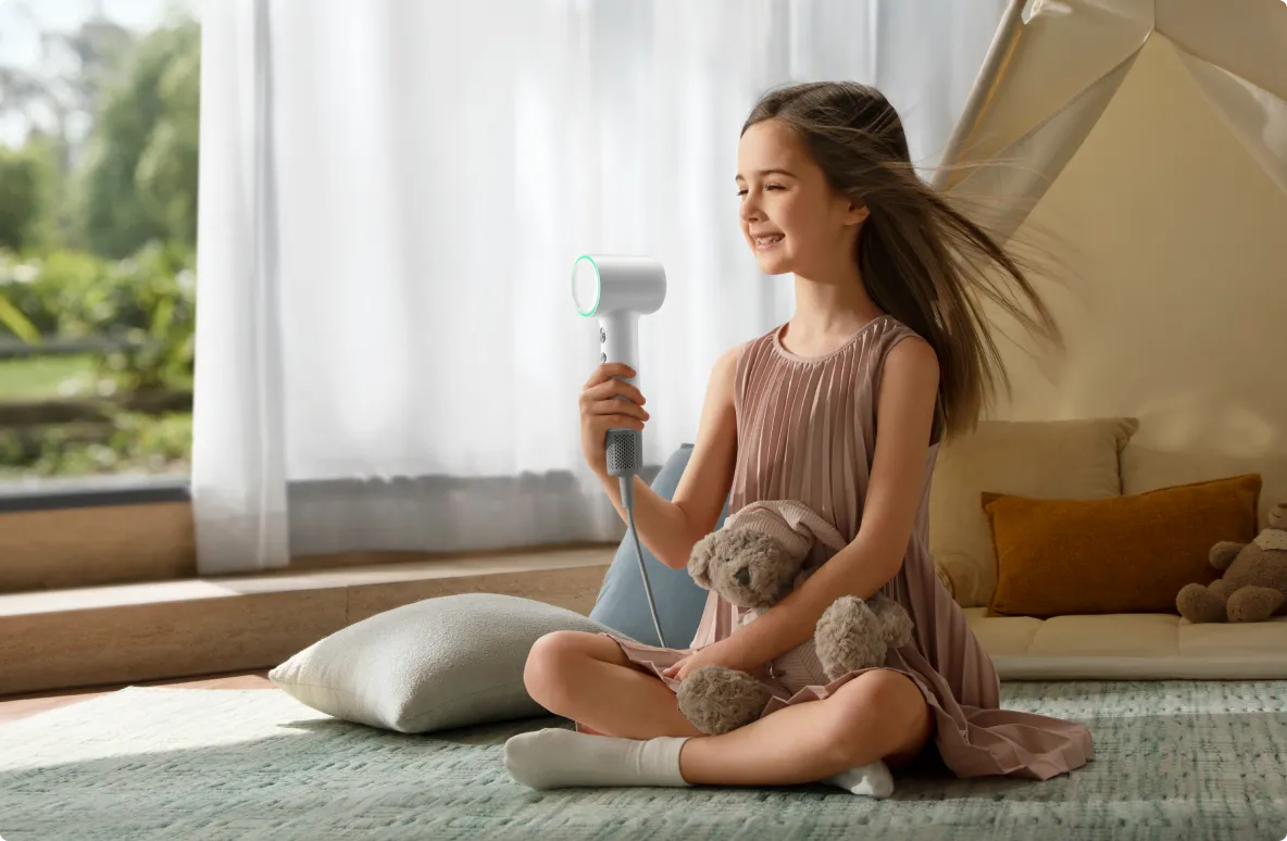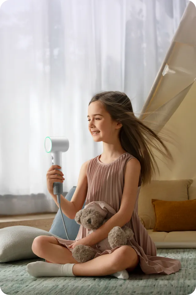*2 minutes : Sur la base de tests réalisés dans un environnement contrôlé. La durée peut varier en fonction de l’environnement, de la texture, de l’épaisseur et de la longueur des cheveux à sécher.