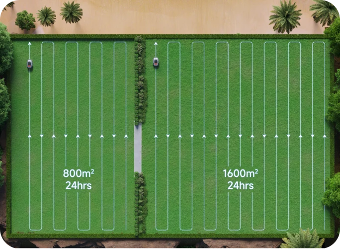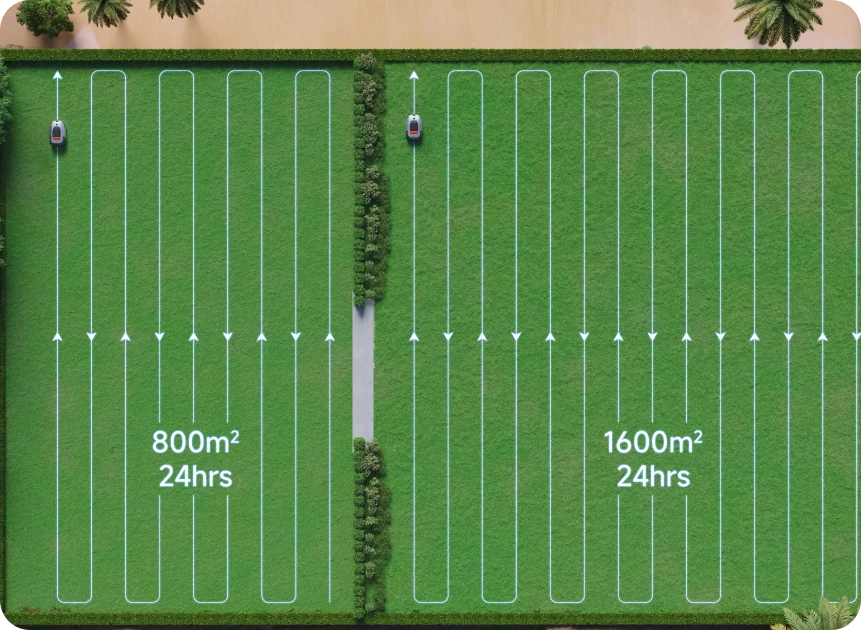 A2 1200 fonctionne selon une trajectoire en U novatrice qui couvre parfaitement votre pelouse, pour une uniformité et une qualité de coupe impressionnantes. Entretenez des terrains spacieux jusqu'à 2 000m² en seulement 24 heures .*