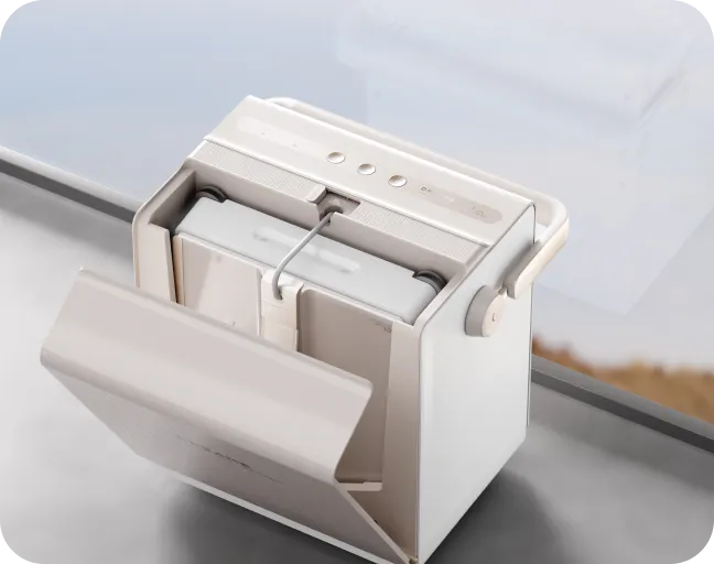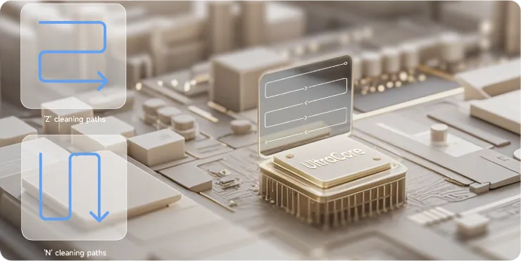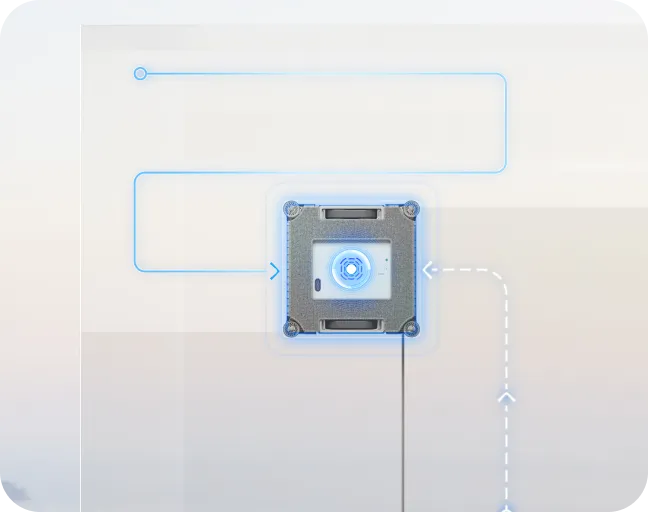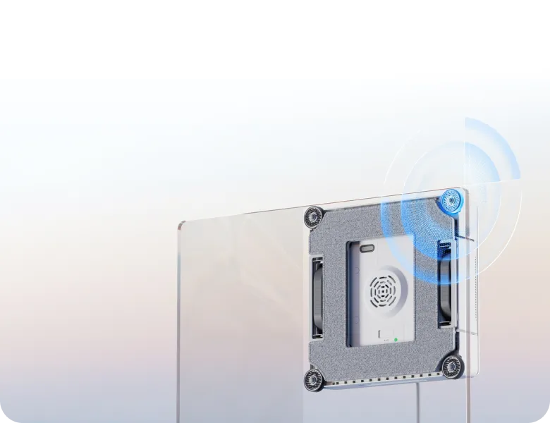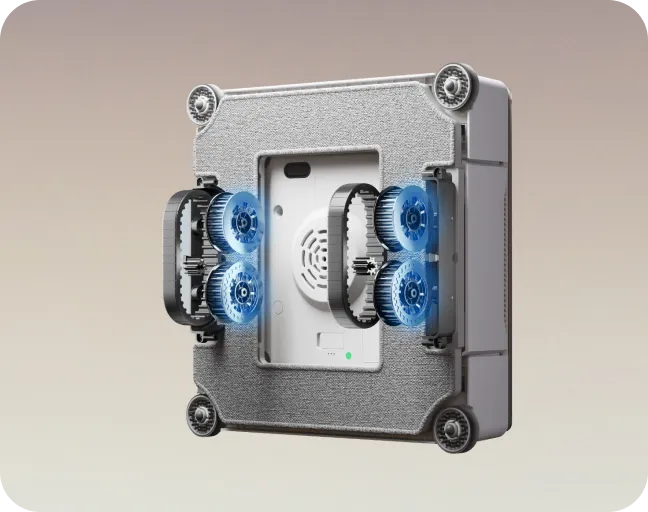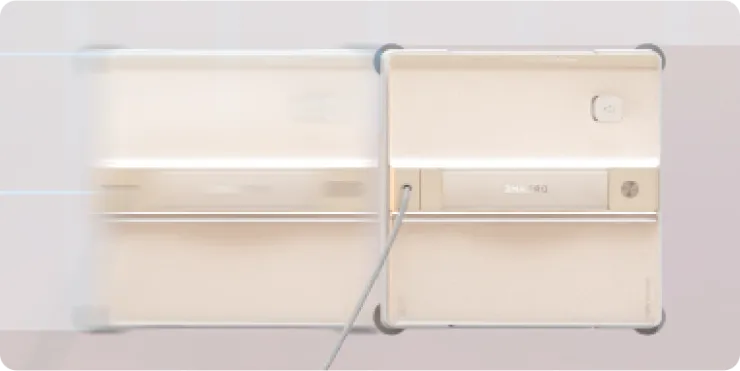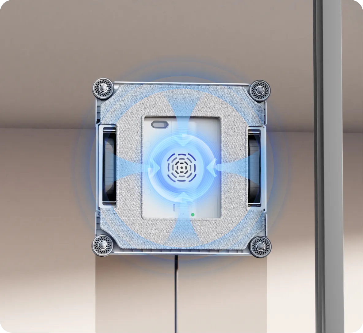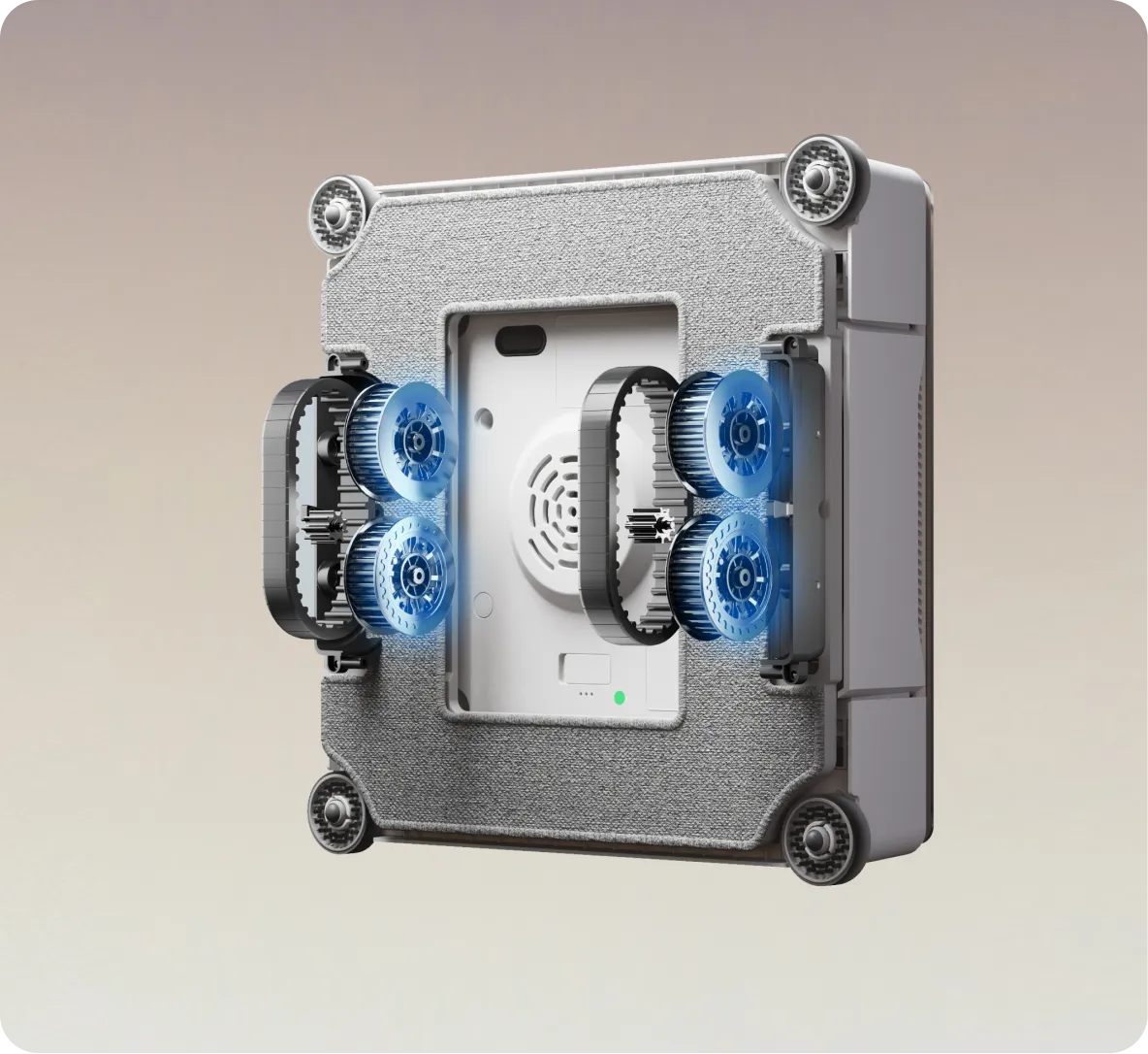 *90 % : lorsque les boules élastiques de la station C1 sont associées à la brosse d'angle dédiée, la couverture de nettoyage des coins de fenêtres augmente de 90 %, d'après nos tests en laboratoire.