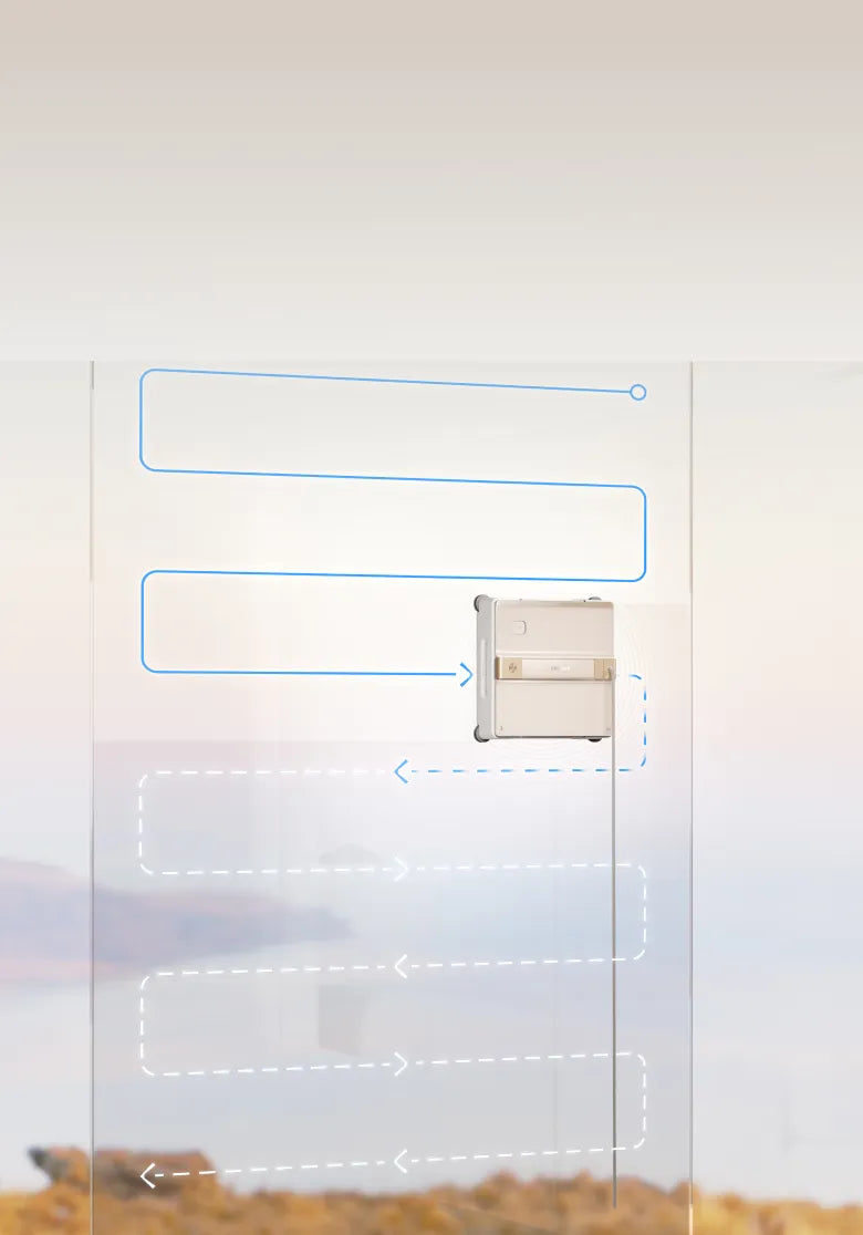 *90 m² correspond à la zone de nettoyage de l'appareil en mode de nettoyage en profondeur de toute la vitre lorsqu'il est complètement chargé, avec un niveau de puissance de sécurité minimum maintenu.