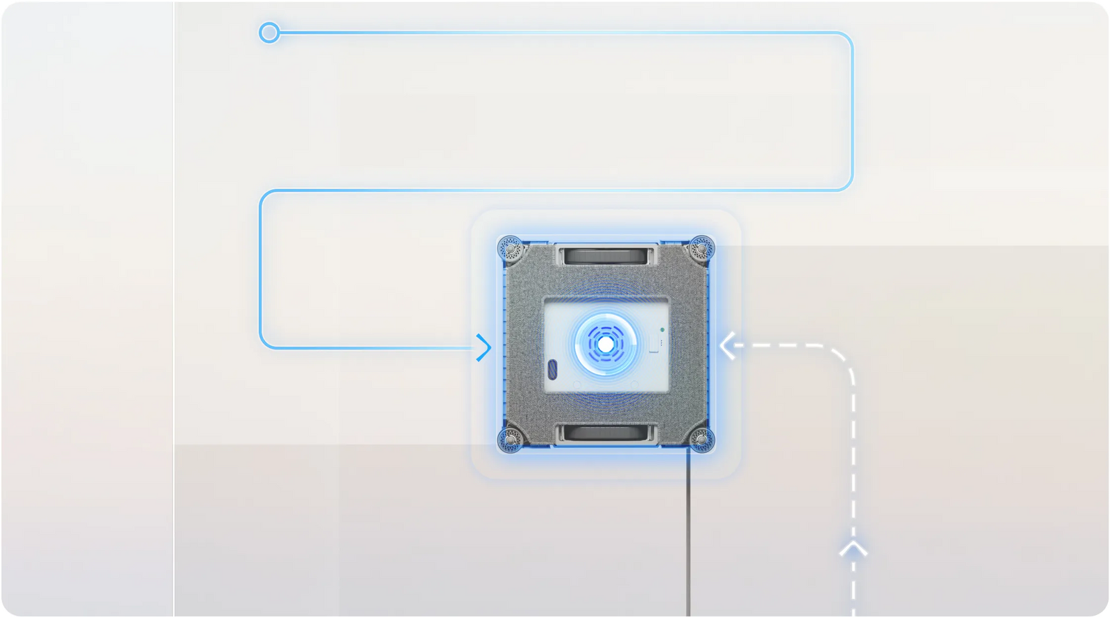 *Angle d'inclinaison des surfaces : la station C1 active automatiquement le mode de nettoyage lorsque l'angle d'inclinaison du panneau est compris entre 60° et 120° ou qu'il est positionné au-dessus de la vitre. Pour les autres angles, une télécommande est nécessaire.