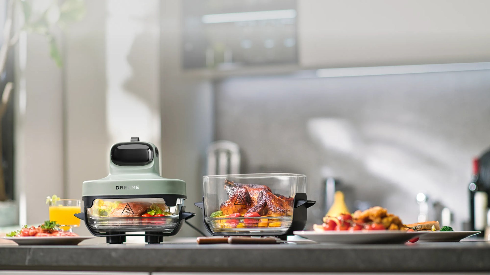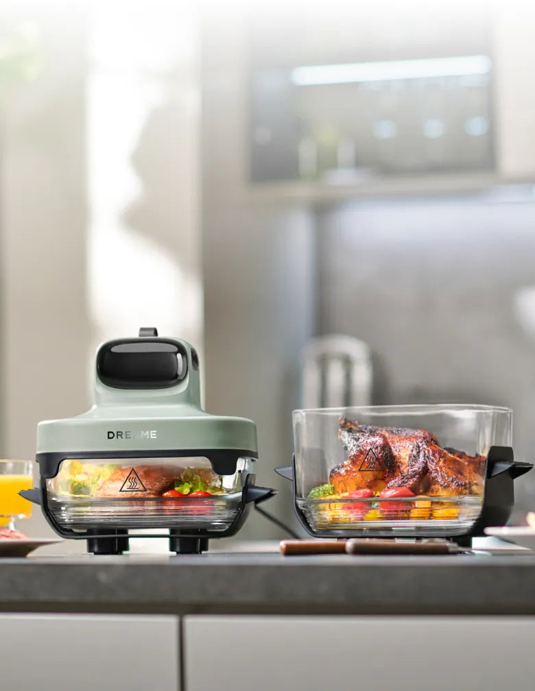 Fonction double pour une portabilité optimale — Un air fryer et une boîte-repas réunies.