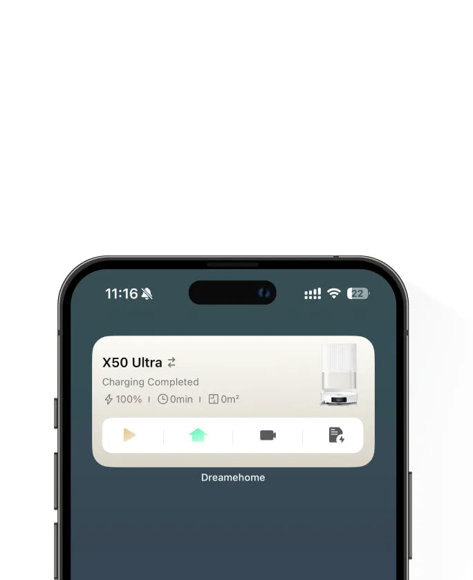 Met de Dreamehome-app kunt u de reinigingsstrategieën voor verschillende soorten tapijt aanpassen, zodat uw tapijt schoon blijft zonder doorweekt, vuil of beschadigd te raken. Voor hoogpolige slaapkamertapijten ontkoppelt de X50 Ultra Complete de dweilen automatisch om uw tapijten droog te houden. Hierdoor wordt uitsluitend gestofzuigd, voor een zachte maar effectieve reiniging.