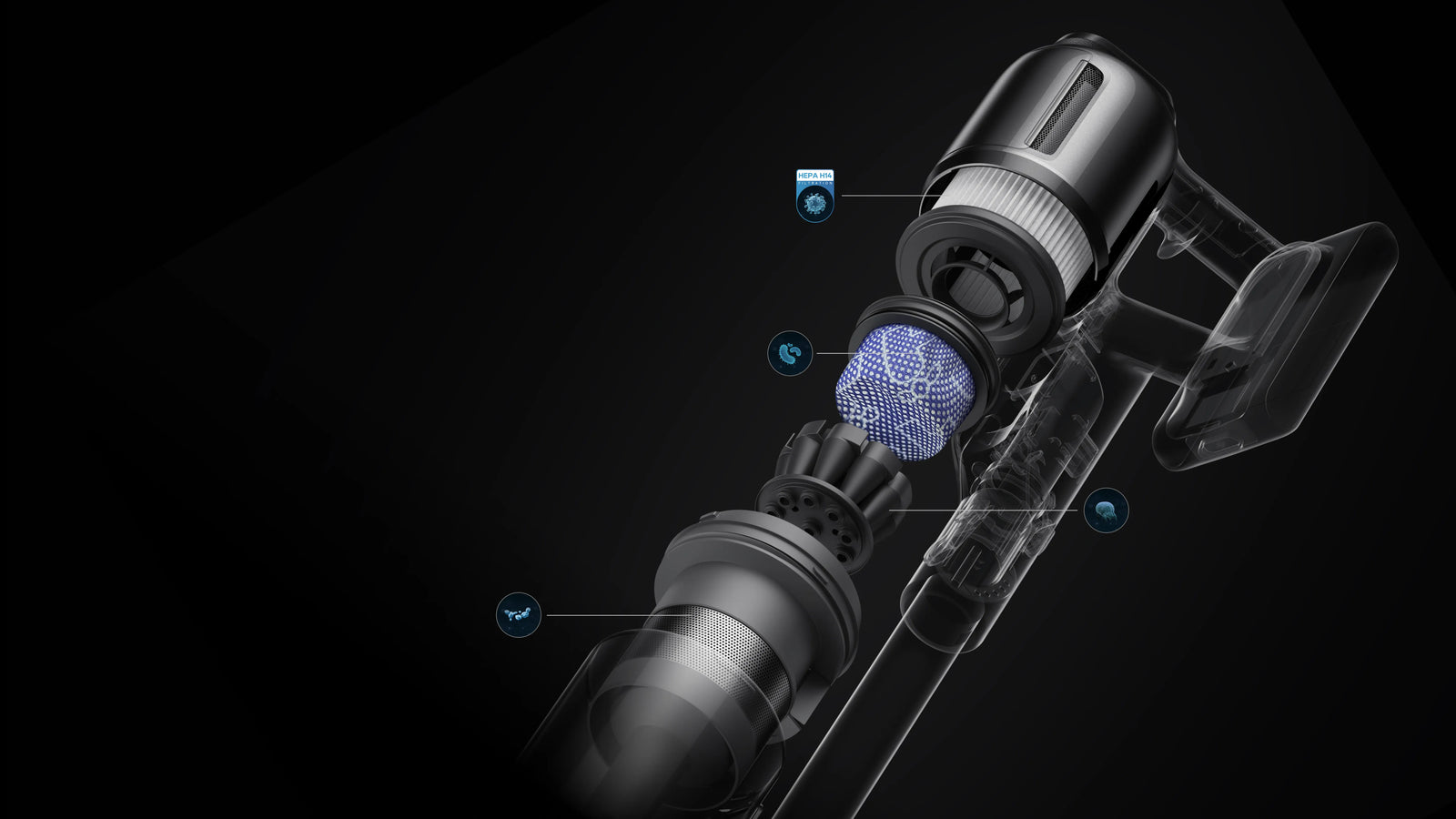 * 200 m² : sur la base des tests effectués dans le laboratoire Dreame, en mode éco avec la brosse principale. Les performances réelles peuvent varier en fonction de l'agencement de votre maison.