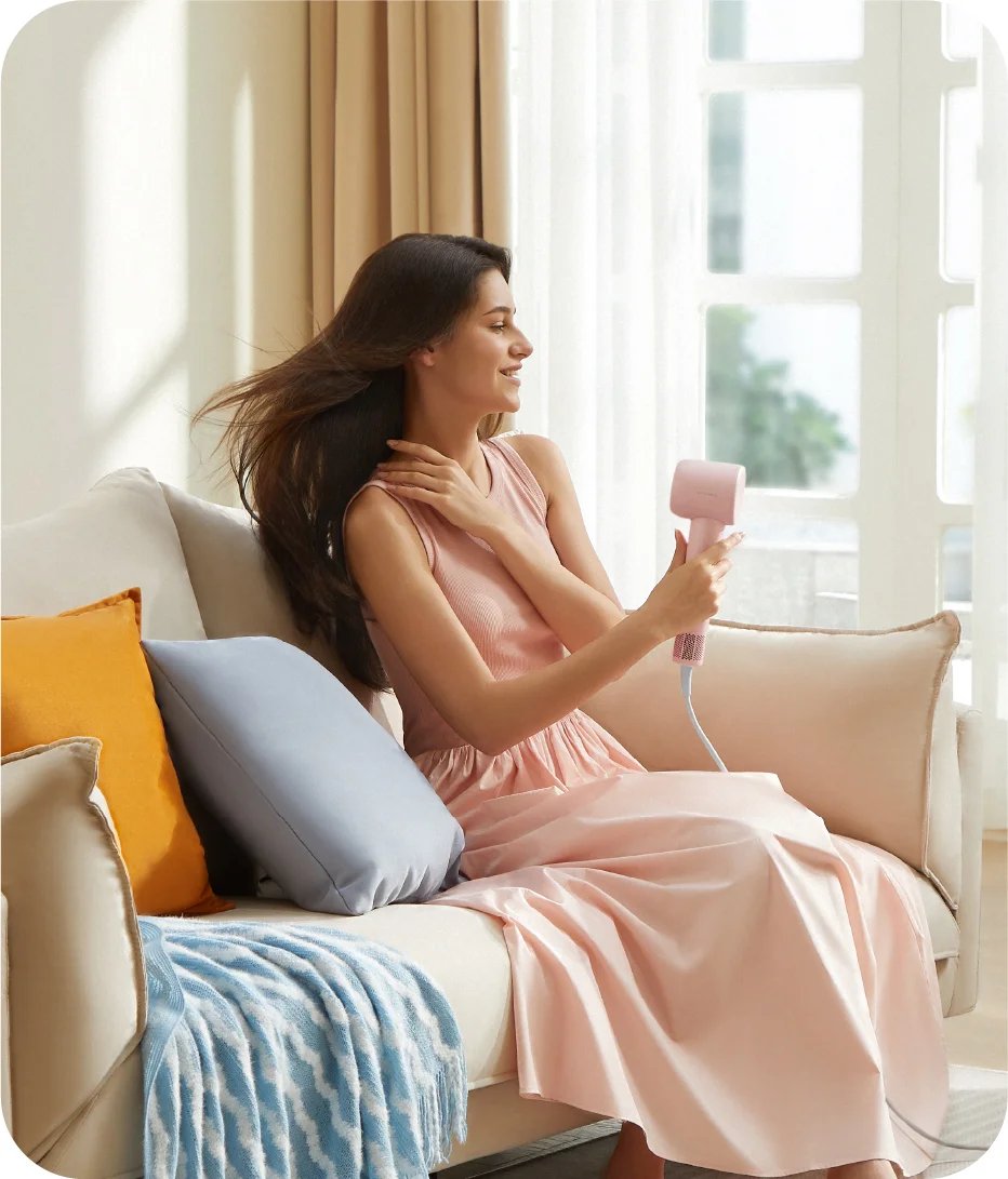 Deux débits d'air et quatre niveaux de température pour un coiffage précis. Le voyant LED coloré et le bouton intuitif s'adaptent à vos besoins, pour un séchage en toute simplicité.