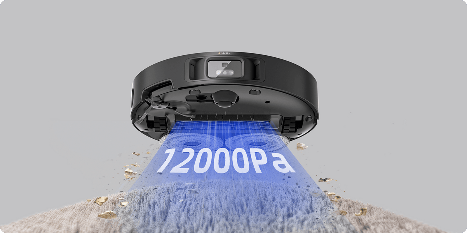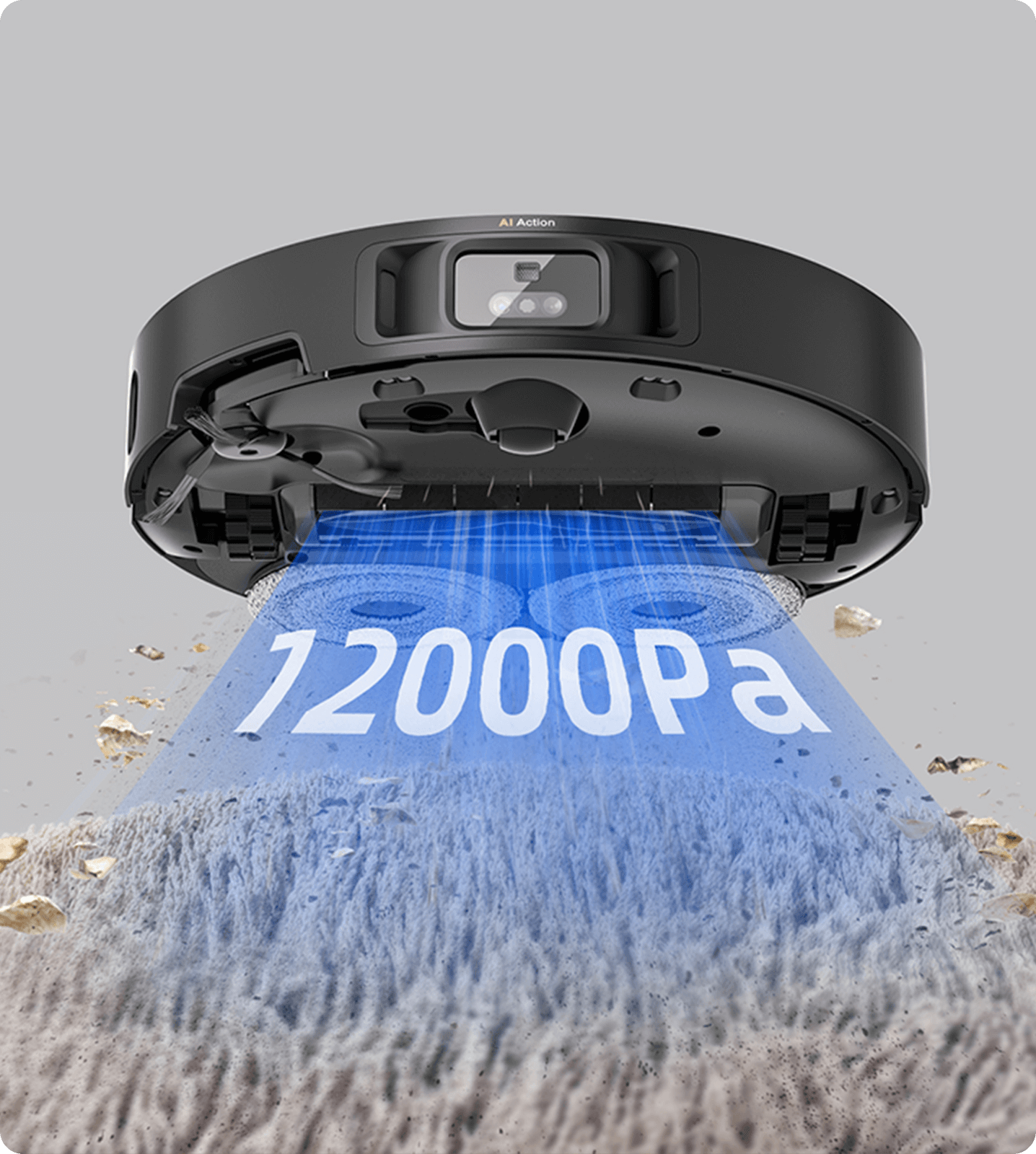 12 000 Pa : d'après des tests effectués dans le laboratoire de Dreame. Les performances réelles peuvent varier en fonction de l'utilisation.