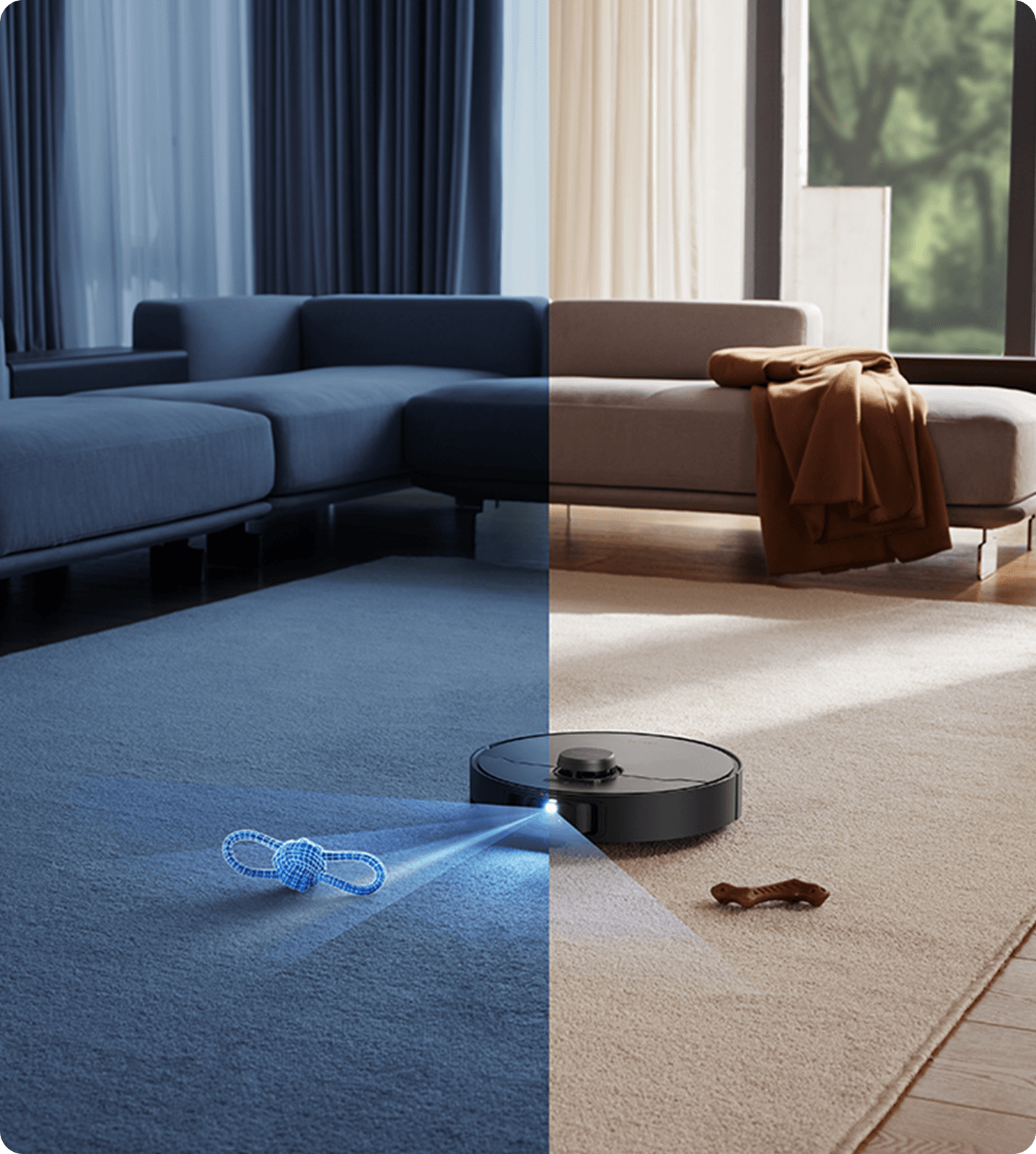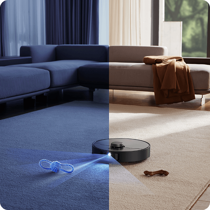 Grâce à la reconnaissance intelligente et à l'éclairage 3D, le X40 Master identifie et évite plus de 80 objets*, tels que des chaussures et des câbles. Grâce à son éclairage LED intégré, il fonctionne même dans des conditions de faible luminosité.