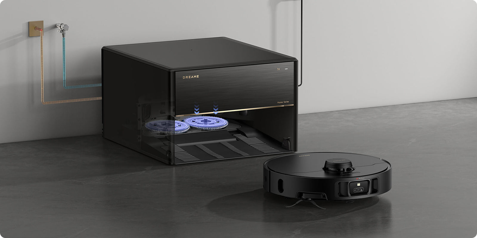 * 308 m² : tests réalisés dans le laboratoire de Dreame en mode lavage avec des réglages d'aspiration silencieux. Les performances réelles dépendent de l'environnement domestique.