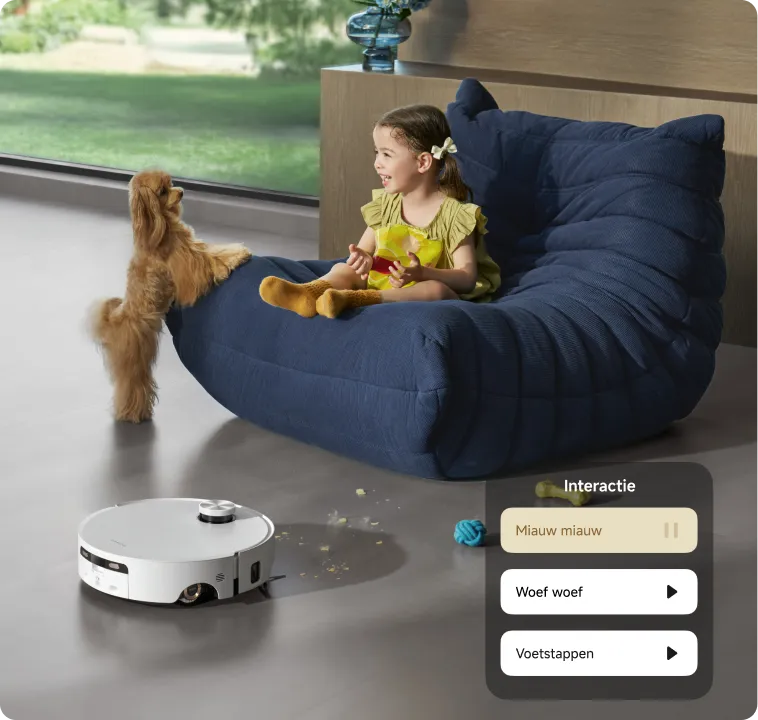 Houd uw huisdier in de gaten en communiceer ermee wanneer u niet thuis bent, terwijl de robotstofzuiger de leefomgeving van uw huisdier altijd schoon houdt.