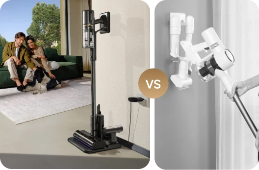 De V20 wordt opgeladen terwijl hij is opgeborgen, zodat hij altijd klaar is voor gebruik. De stofzuiger en accessoires zijn veilig opgeborgen op het basisstation voor gemakkelijke toegang en organisatie.