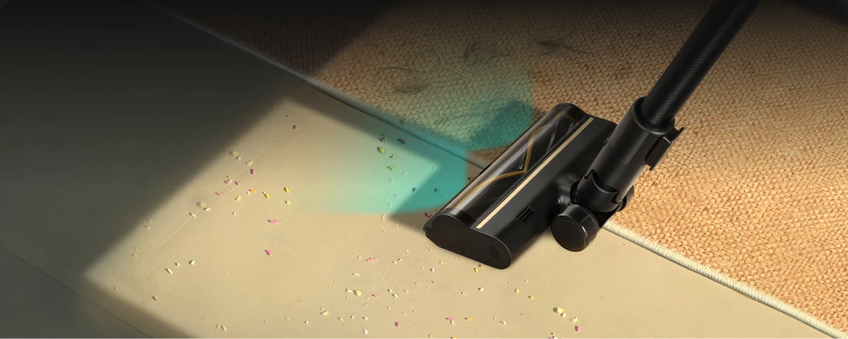 De CelesTect™-verlichting onthult verborgen stof, terwijl de stofsensor de grootte en het volume van de deeltjes detecteert voor een slimmere reiniging.