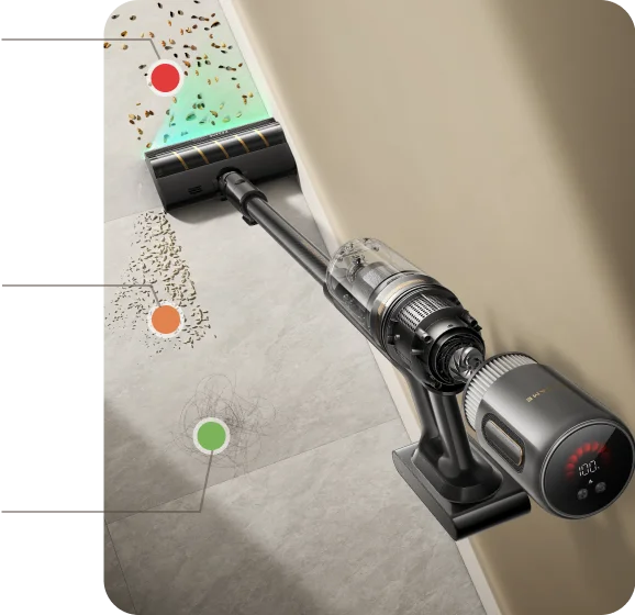 *250 m²: gebaseerd op tests in Dreame Lab, in de Eco-modus met de borstel voor meerdere oppervlakken. De werkelijke prestaties zullen variëren op basis van de indeling van uw specifieke huis.