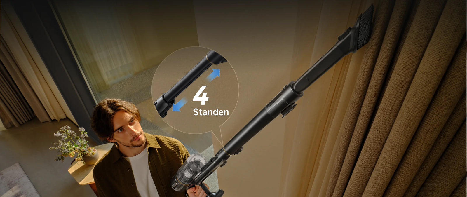 *90 minuten: gebaseerd op tests in Dreame Lab, in de Eco-modus met de combinatiehulpstuk.