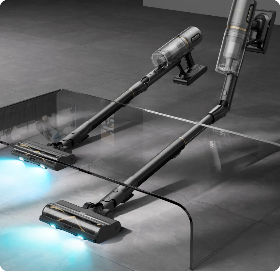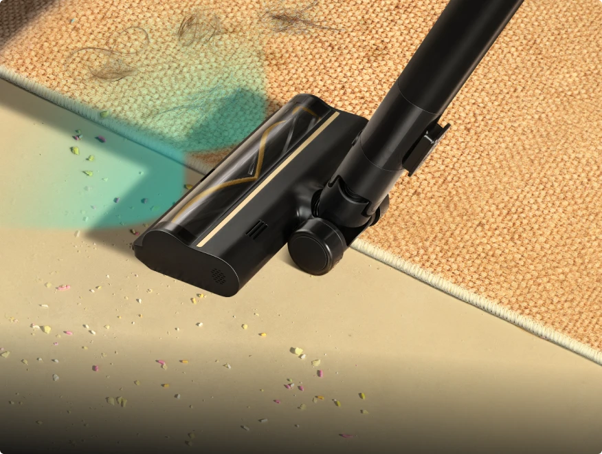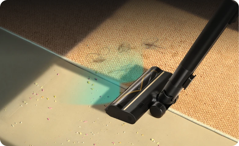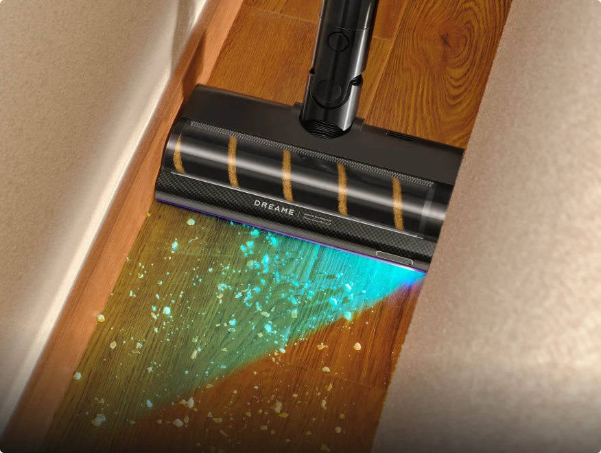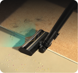 De CelesTect™-verlichting onthult verborgen stof, terwijl de stofsensor de grootte en het volume van de deeltjes detecteert voor een slimmere reiniging.