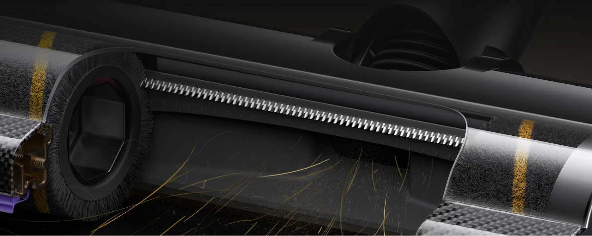 De verbeterde zachte rolborstel van de V20 Pro-A heeft een TangleCut™-ontwerp dat automatisch haarklitten verwijdert tijdens het opzuigen. Hierdoor blijft de borstel klitvrij* en hoeft u niet handmatig te ontklitten.