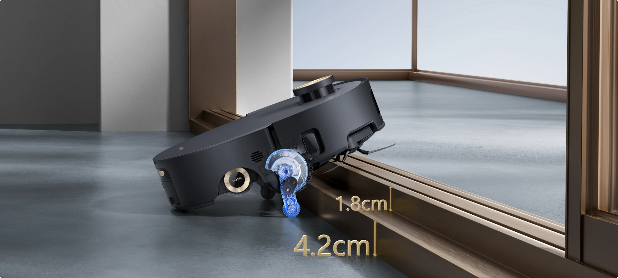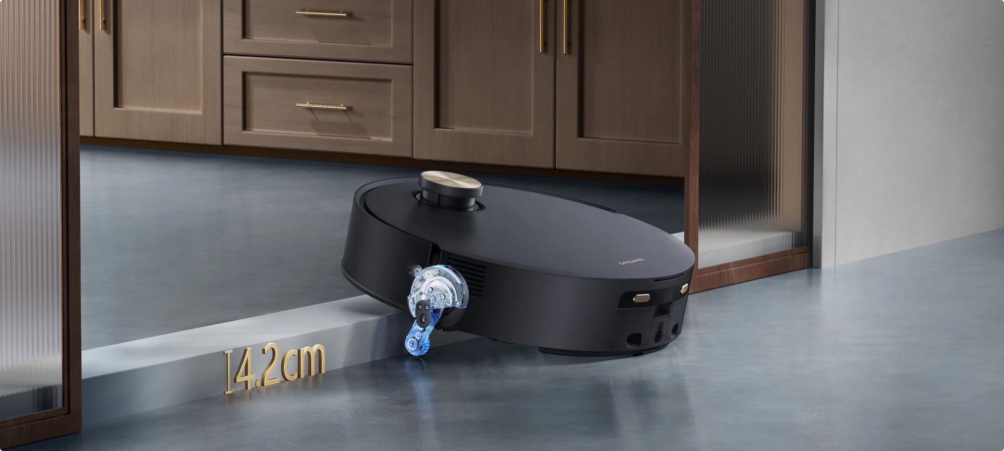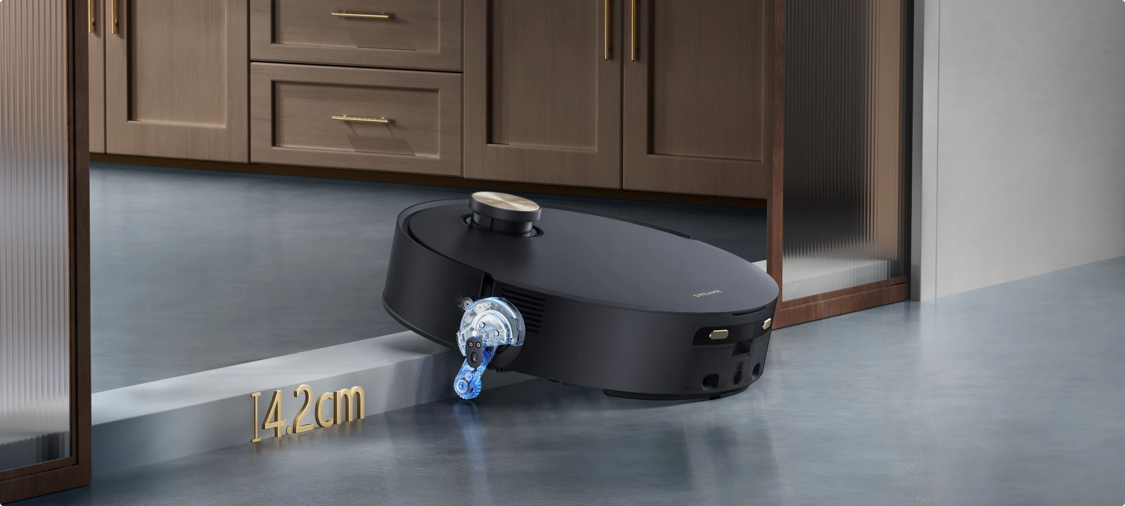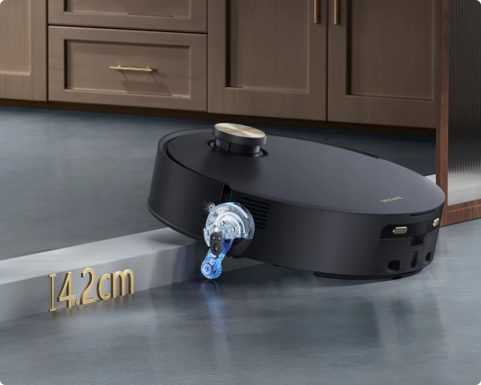 *14 mm: de hoogte van de robotstofzuiger verschilt met 14 mm voor en na het optillen van de dweil.