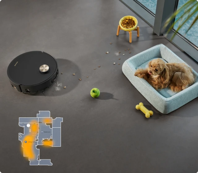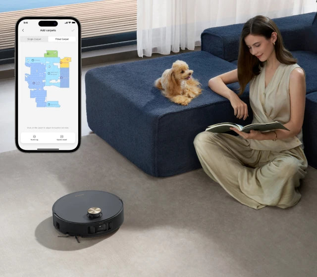 *Intensieve tapijtreiniging: beschikbaar in de schoonmaak-app. Na het instellen vertraagt de robotstofzuiger de snelheid en reinigt hij het tapijt twee keer.