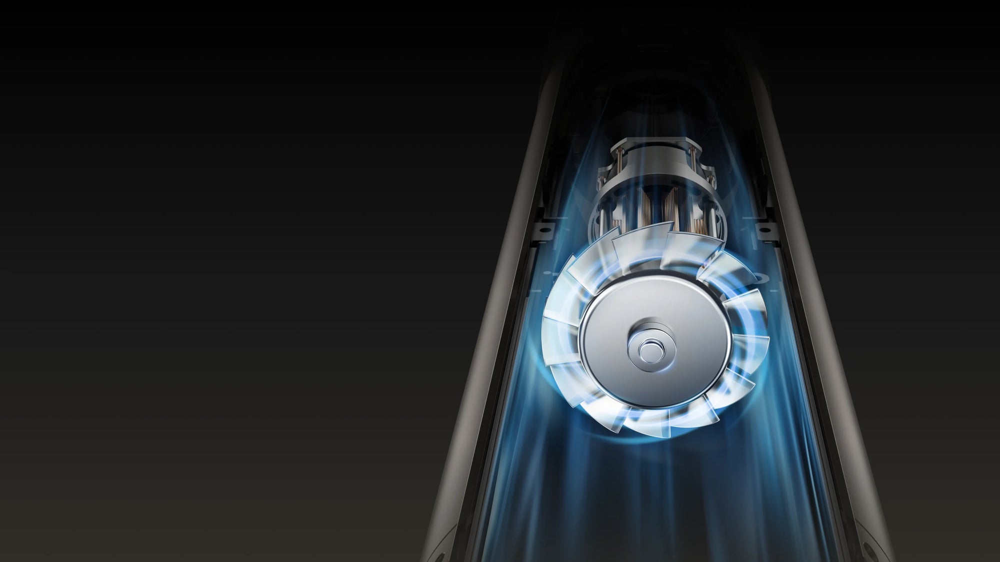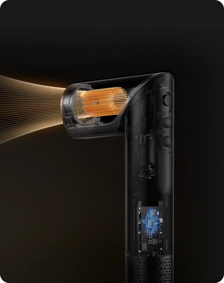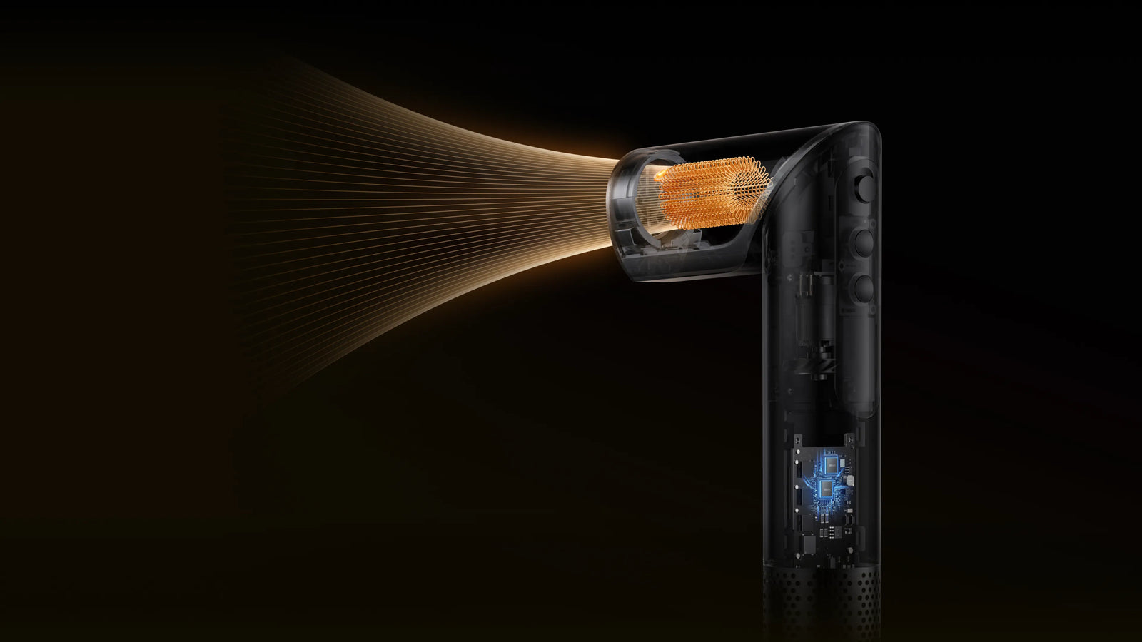 De hogesnelheidsmotor en krachtige luchtstroom zorgen voor snel en efficiënt drogen.