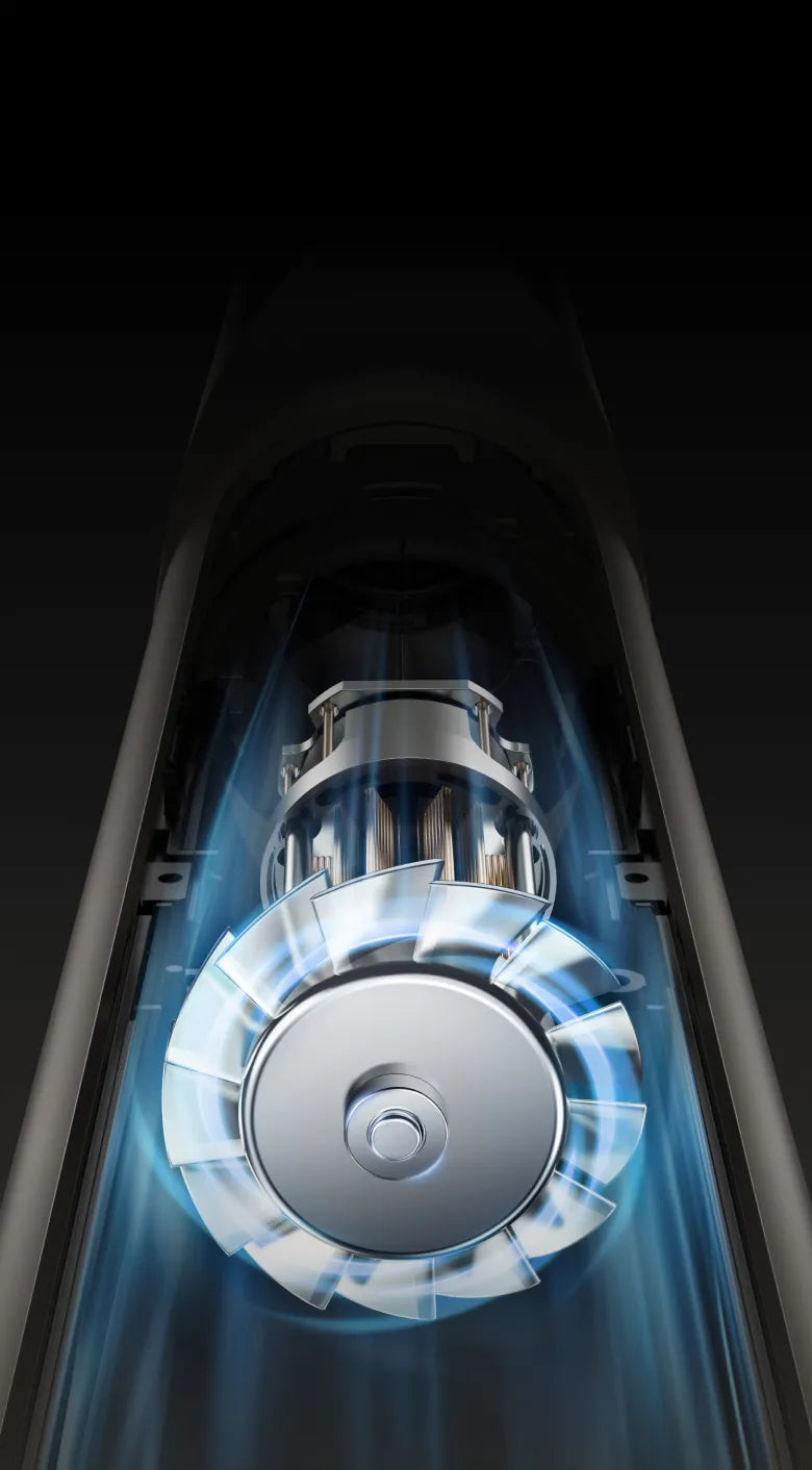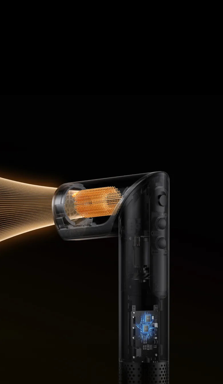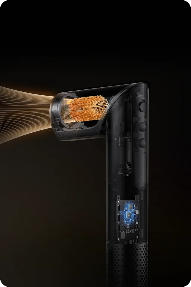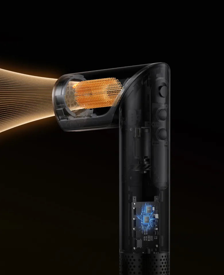 De hogesnelheidsmotor en krachtige luchtstroom zorgen voor snel en efficiënt drogen.
