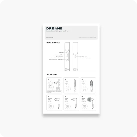 Zodra Dazzle het krulopzetstuk detecteert, activeert hij automatisch de krulmodus. Hierbij wordt 10 seconden warme lucht gebruikt om het haar in model te brengen, 5 seconden koude lucht om het te fixeren en volgt er een pauze van 7 seconden voor eenvoudig stylen. Intelligente regeling zorgt voor gladde, natuurlijke krullen.